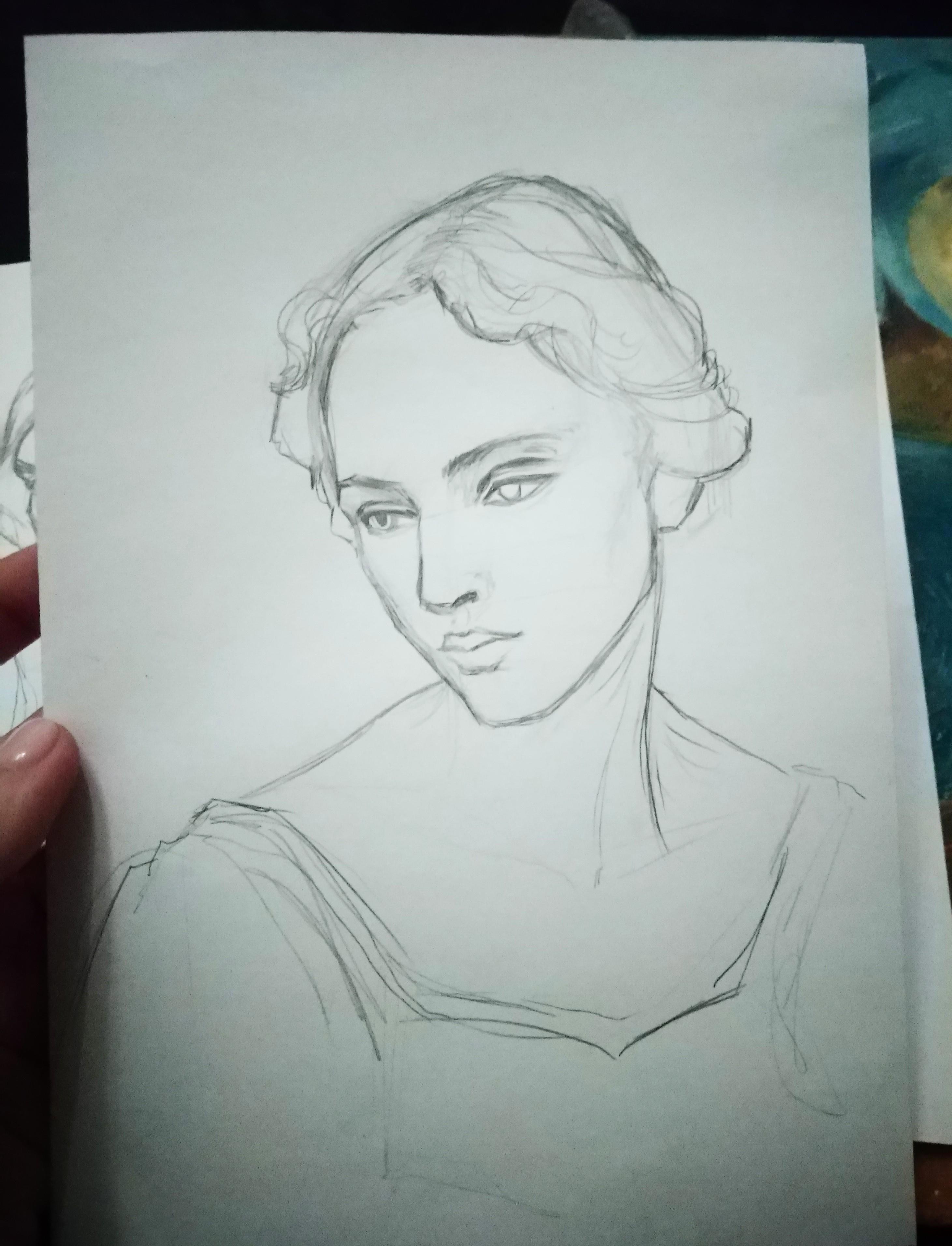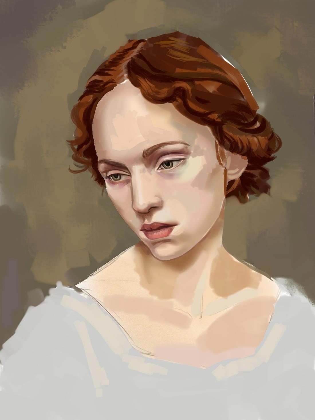 Очень понравился типаж. Классическая красота. Причем тот особенный ее вариант, когда с первого взгляда видишь человека в определенной исторической эпохе, наряде. Меня такое виденье кроет регулярно)) Здесь снова проявилась моя необъяснимая и непреодолимая страсть к рисованию рыжих людей. Их чуть ли не половина от общего числа портретов. Начинаю подозревать, что эта история каким-то образом тянется из прошлой жизни