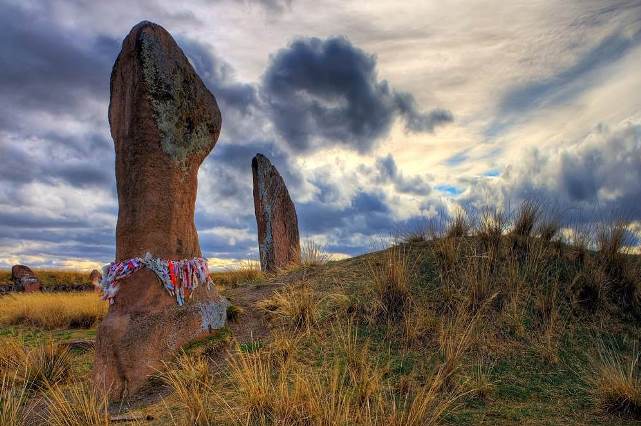 Автор: Елисеев ИльяХакасская степь вся утыкана археологическими памятниками: курганы, могильники, менгиры, остатки древних сооружений - и так далее вплоть до горизонта. На 100 километров пути обязательно не раз и не два встретится какое-нибудь захоронение, которое видно даже полному профану в исторических науках. Не удивлюсь, если треть местных холмиков и сопок имеют искусственное происхождение, и внутри обязательно кто-то да похоронен. Оно, конечно, неудивительно - в этих степях люди жили как минимум с неолита (предки Окуневской культуры), а может и раньше.