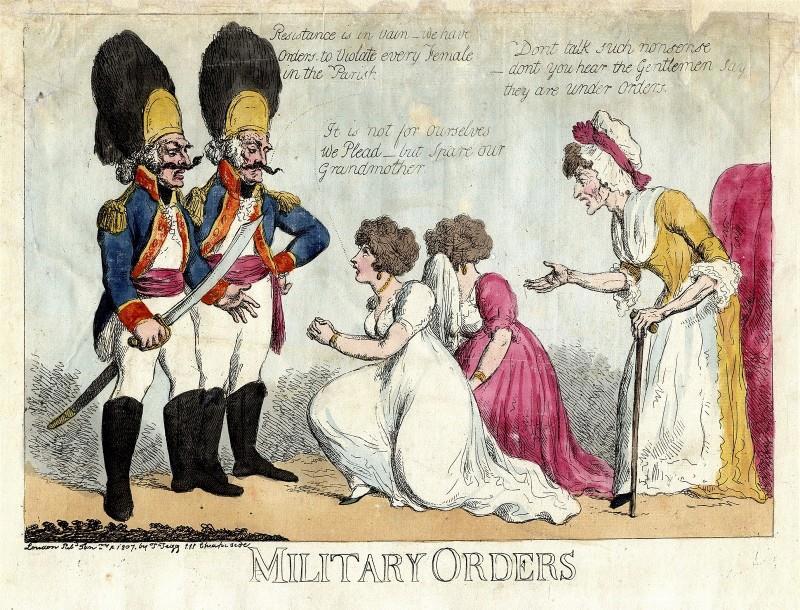 Забавно, а ведь это время строгого целомудрия вроде в Великобритании, а тут такие шуточки. И над союзниками - пруссаками (приказа такого не было, как понимаете), и над побежденными французами.