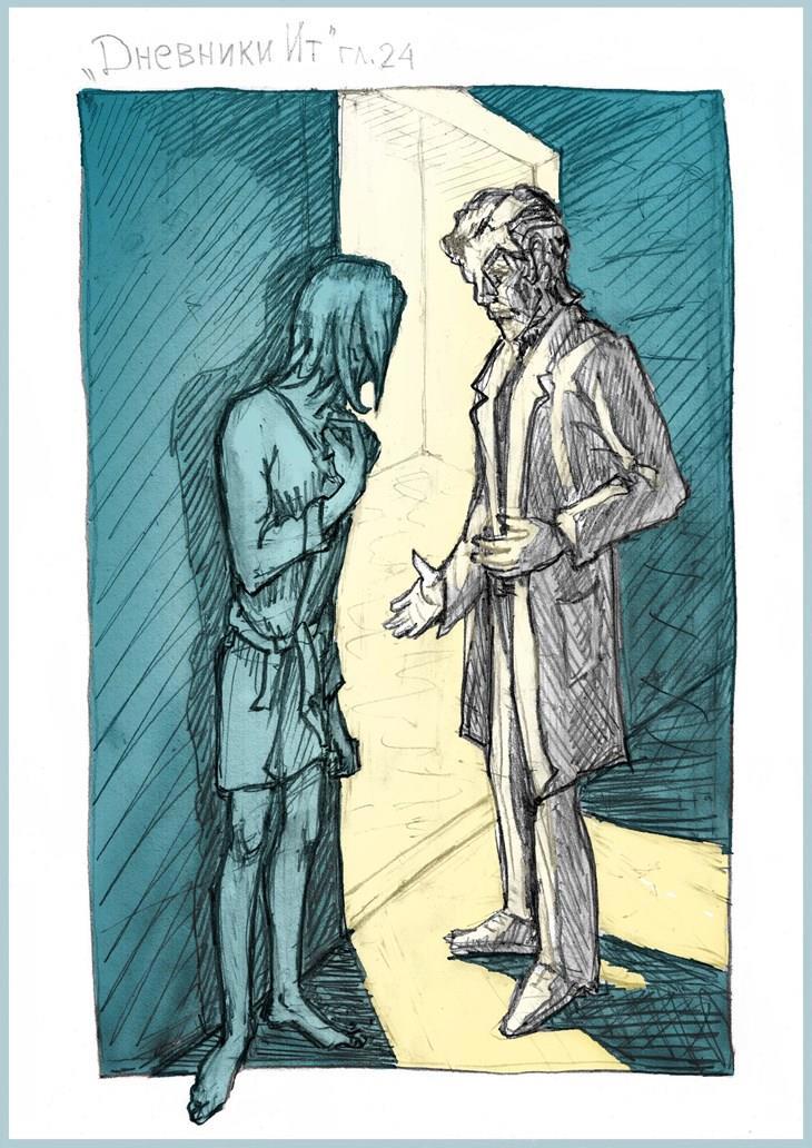 Для начала - иллюстрации к "Дневникам Ит". Тэги: биотехнологии, люди, андроид, спецслужбы, элементы слэша, незаметный_постап.