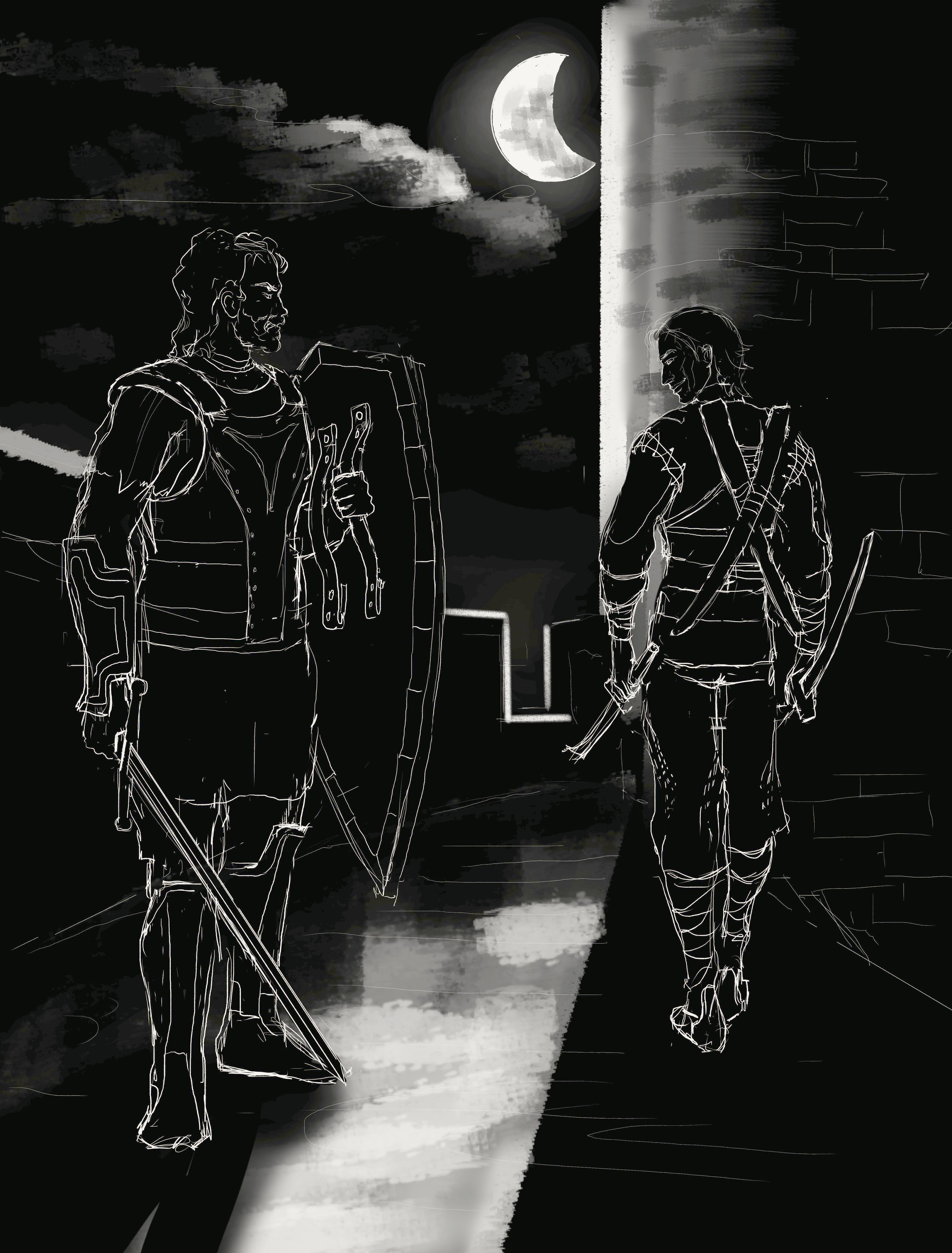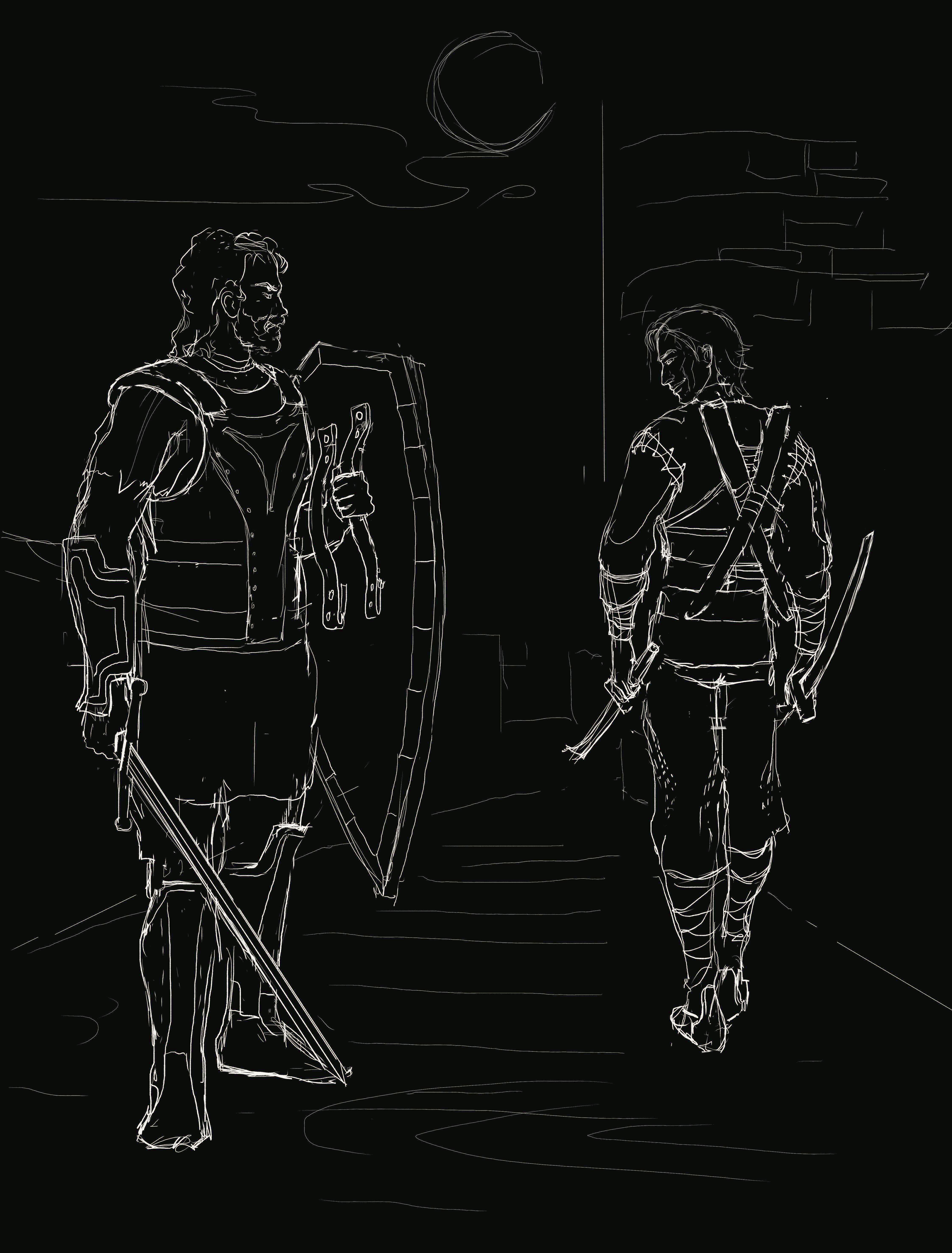 Автор: Ольга МорохЕсть небольшая проблема в том, что после работы хочется тихо сдохнуть на диване. Рисовать тоже хочется. И сдохнуть хочется. Но рисовать больше. Потому продолжим. Сегодня немножко правлю набросок, потому что в книге есть определенная последовательность событий, засим вспомнила, что один из героев волосы остриг, а второй, наоборот должен быть покосматее. Вместе с прической немного правлю и доспех. Не кричите, что все неправильно. По логике вполне подходит.