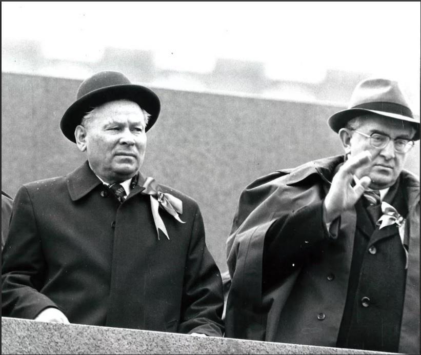 Первая фотография сделана 15 ноября 1982 года. Похороны Леонида Ильича Брежнева. Оба его преемника идут один за другим.