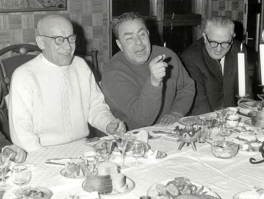Президент Финляндии Урхо Калева Кекконен, Генеральный секретарь ЦК КПСС Леонид Брежнев, председатель КГБ СССР Юрий Андропов. 1970-е.