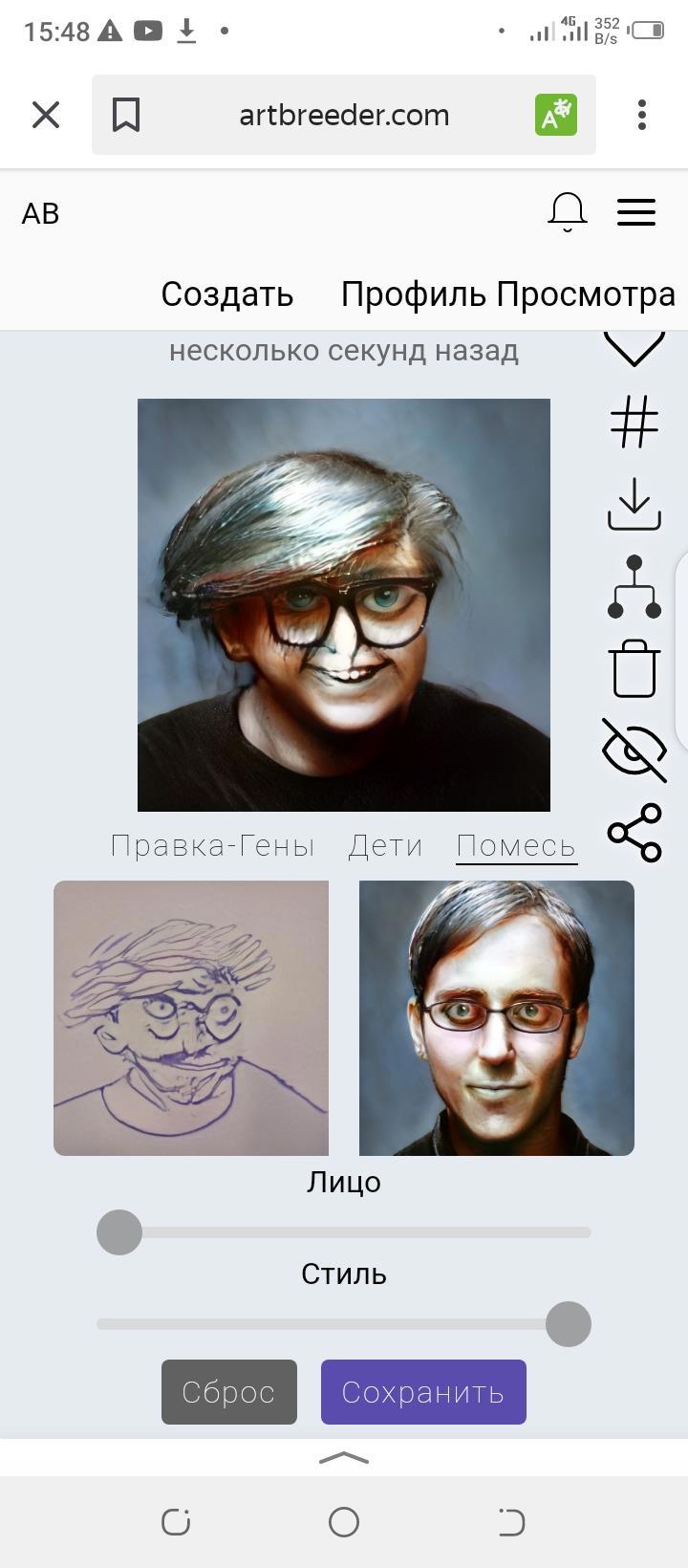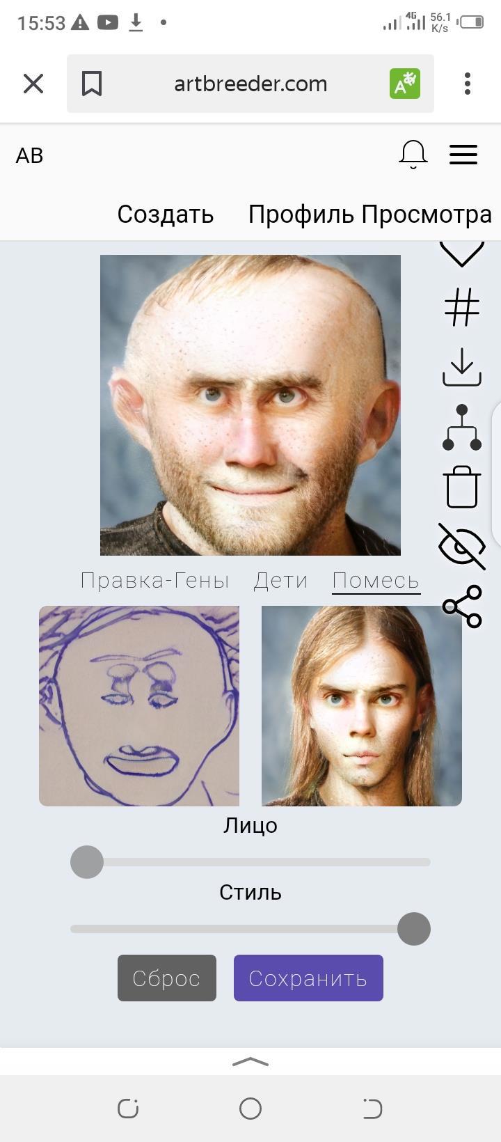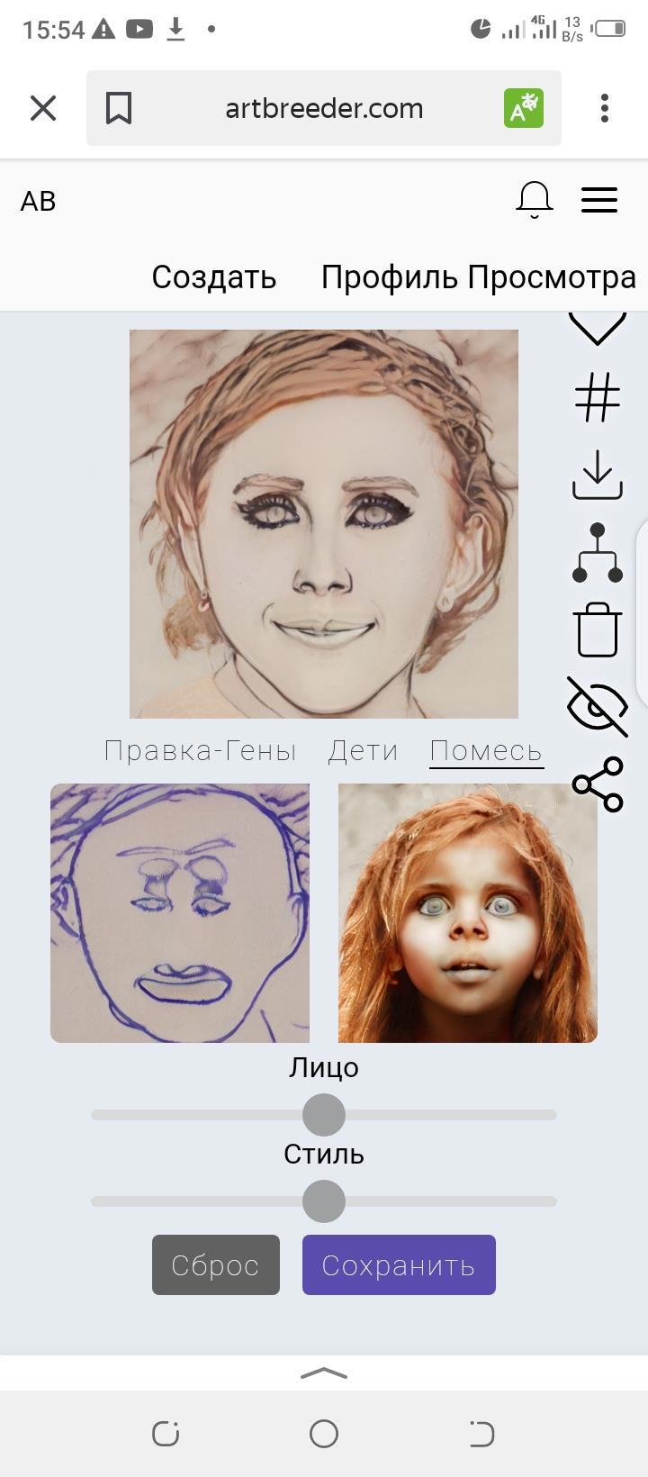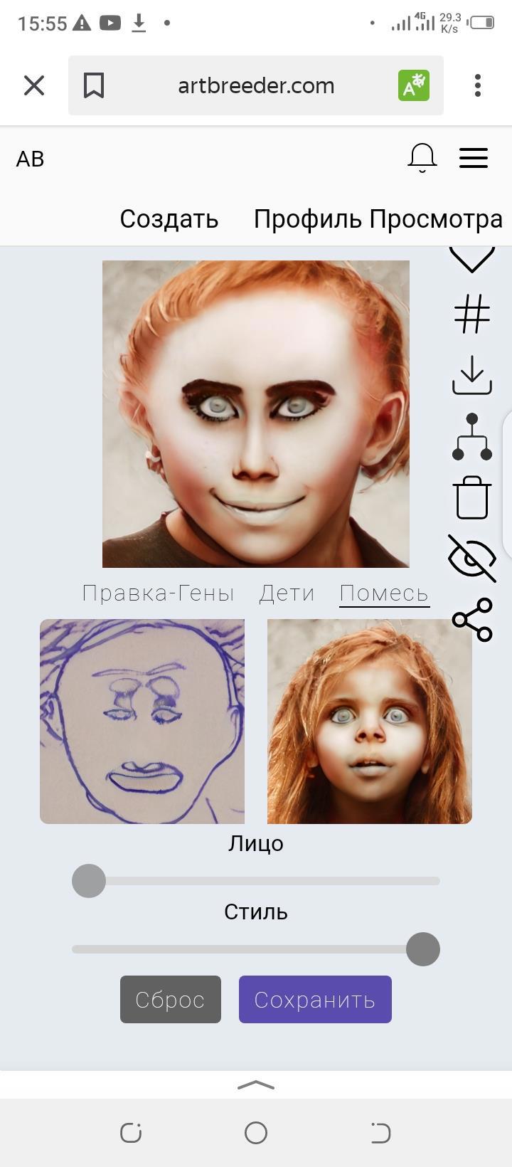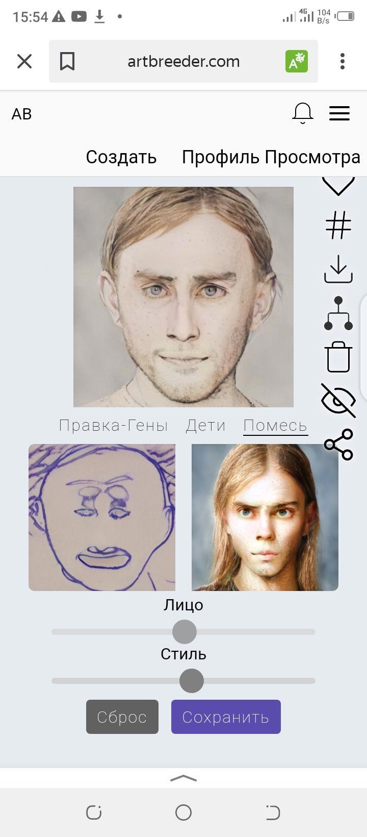 Далее я выбираю рисунок в нужном мне стиле и применяю к чертам лица своего творчества. (Тут по идее я должен расписать как скачал в инете фотографию и загрузил ее на сайт. Но у меня уже есть рисунки от смешения множества фотографий. Возьму один из них).