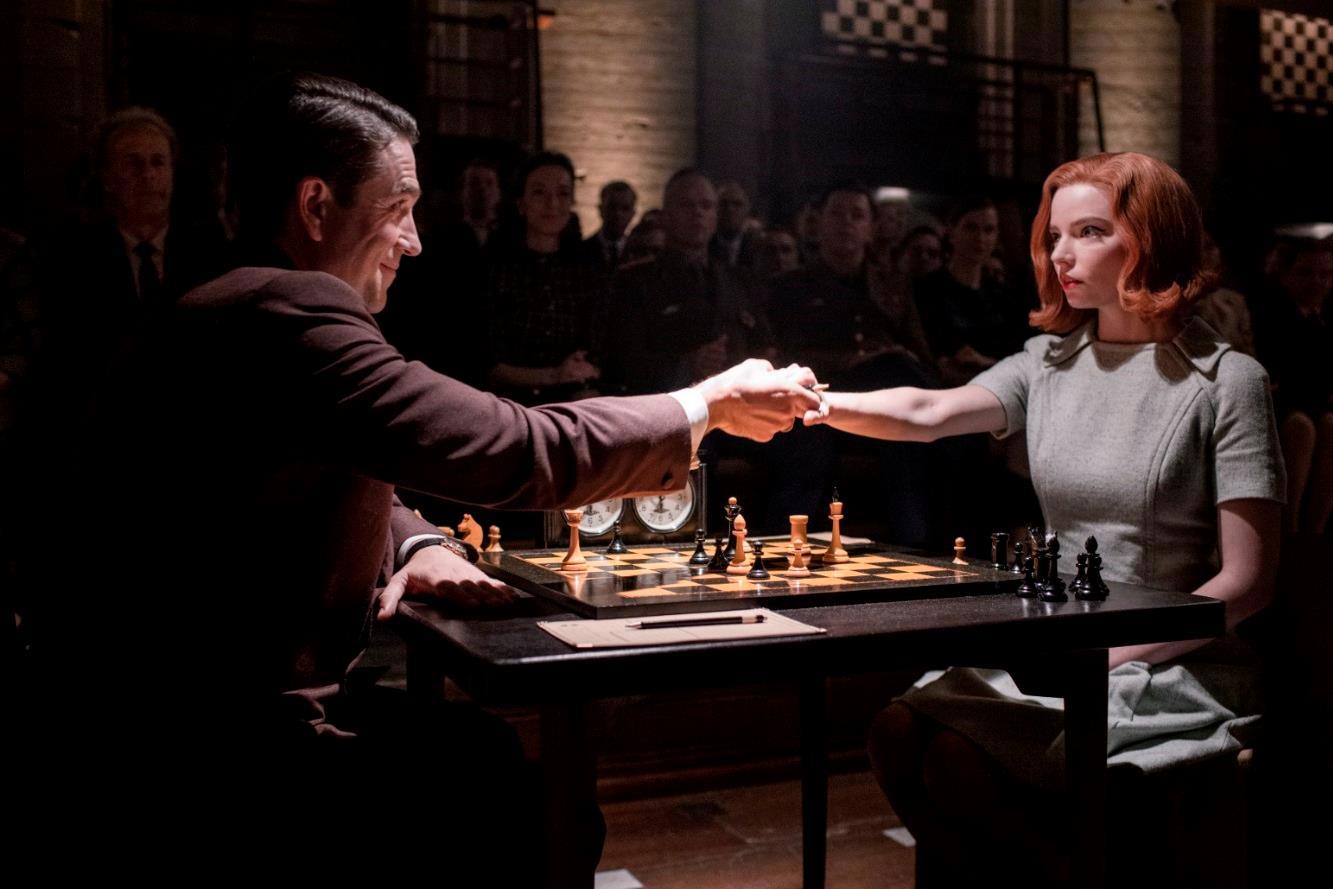 Очень порадовал СССР, все еще клюквенный, но такой человеческий. Эти черные залы с колоннами. Эти плакаты с красными флагами, и шапки-пирожки, и КГБ, подсылающее "подругу", чтобы споить американскую шахматистку накануне важного матча! Все как в добрые старые времена Джона Ле Карре. А этот мальчик, по утрам развозящий водку в ресторане!
