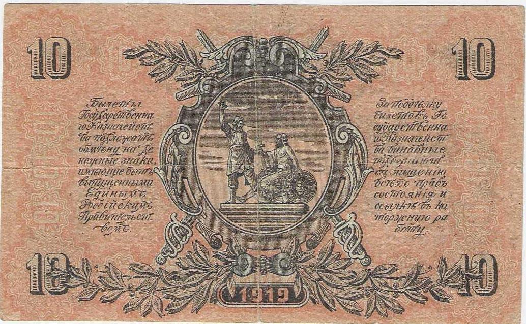 Купюра 10 рублей Государственного казначейства ГКВСЮР
