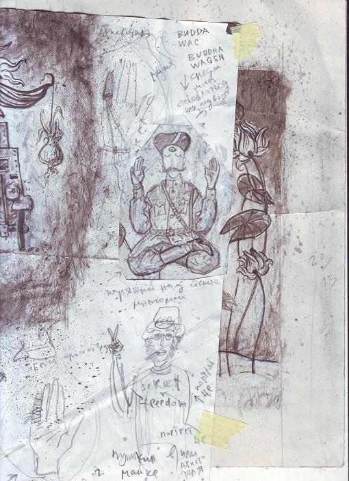 В 2013, что-ли, году участвовал в конкурсе на право иллюстрировать собрание сочинений Пелевина - остались рисунки, решил пополнить ими свой портфель. Чего добру пропадать.