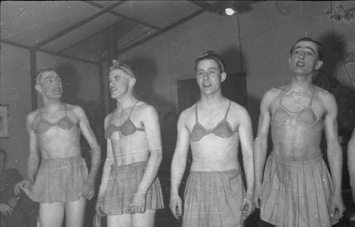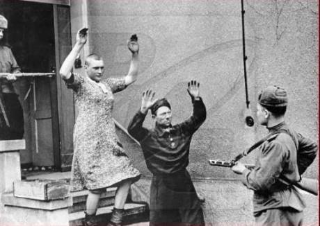 В конце войны, к слову, мода опять изменилась. Это не несчастные трансвеститы, которых угнетают злые советские гомофобы - на фото момент взятия в плен переодевшихся в женское платье солдат СС, конец войны.