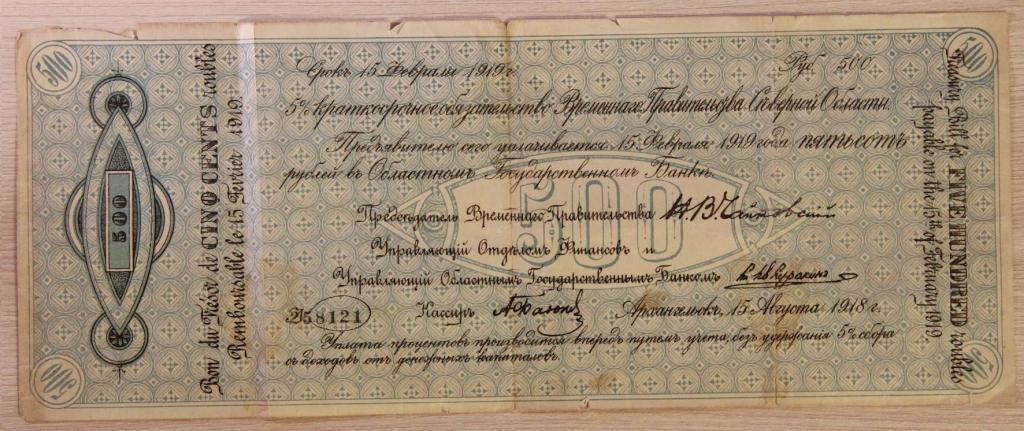 Придя к власти, белое правительство Севера по главе с социалистом Чайковским оказалось в непростом положении: отступая из Архангельска, большевики вывезли из хранилищ Госбанка все наличные денежные знаки.