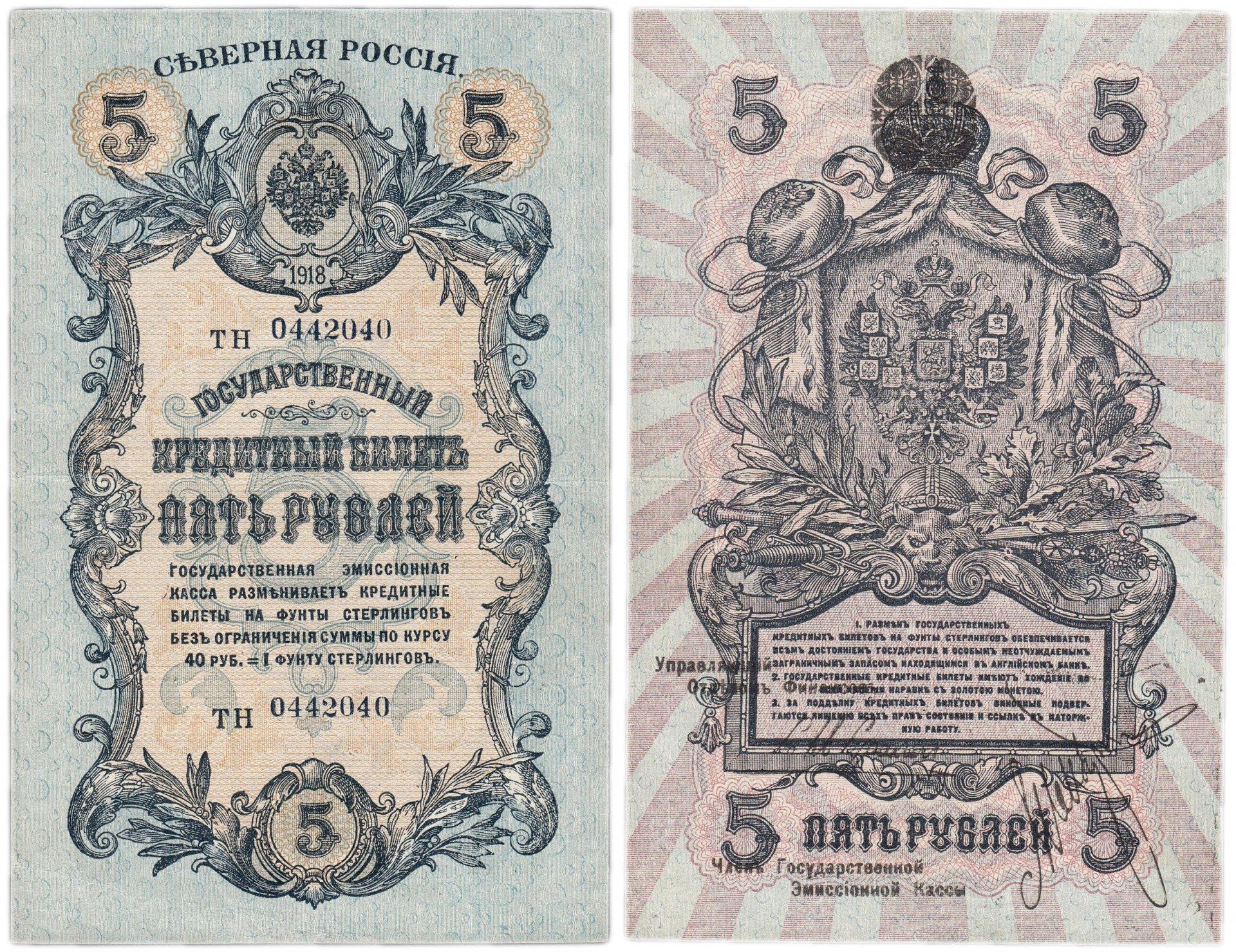 5 рублей Северной России первого выпуска