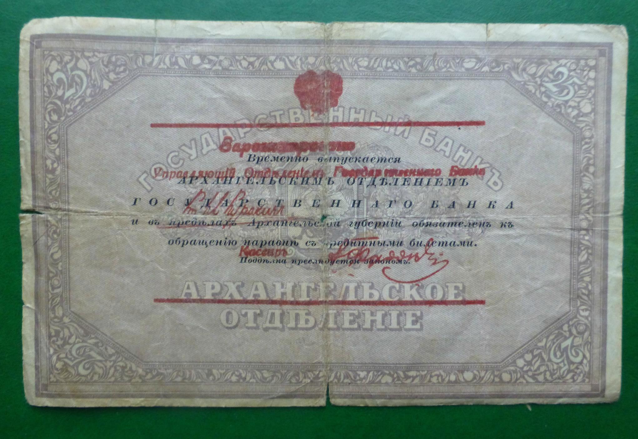 25 рублей Северной России первого выпуска