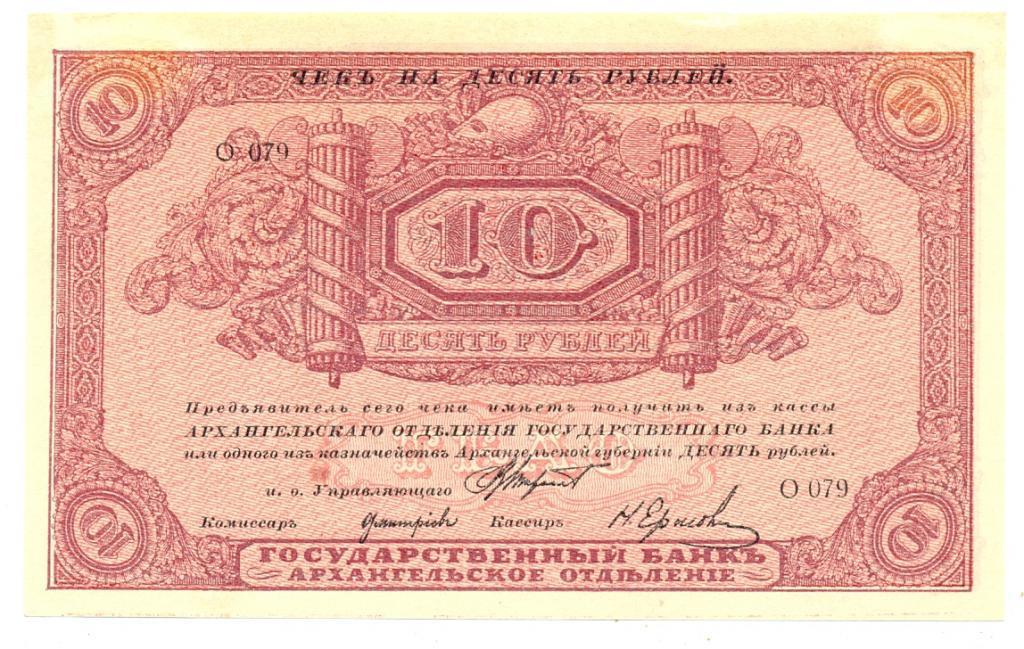 9 января 1918 года в советском на тот момент Архангельске было принято решение об осуществлении эмиссии расчетных знаков. Заказ на их печать был размещен в Петрограде в одной из лучших столичных типографий - товариществе "Р.Голике и А.Вильборг".