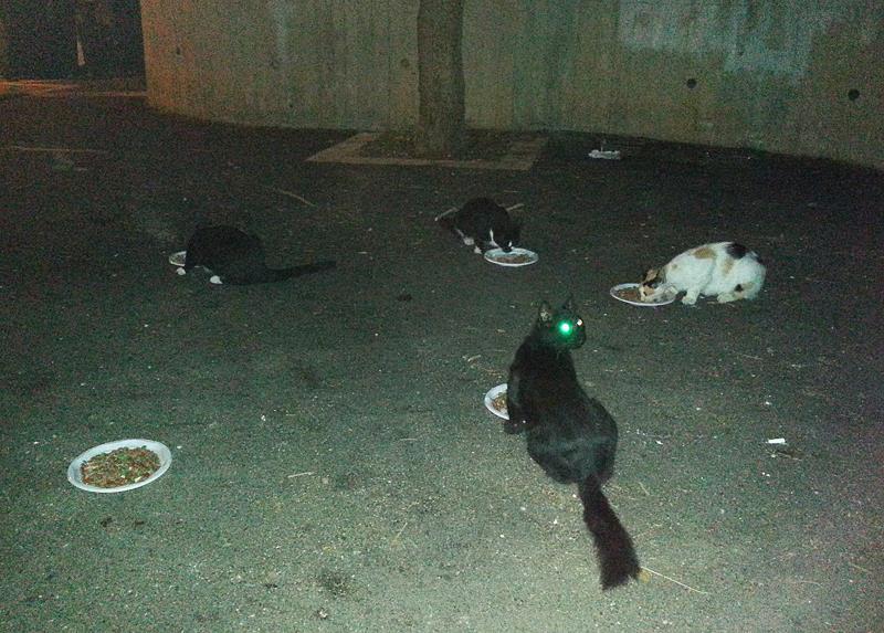 Нет, иногда нормально - пришли, поели, разошлись. Или даже поначалу явилось два с половиной кота, но потом подтягиваются. А иногда...