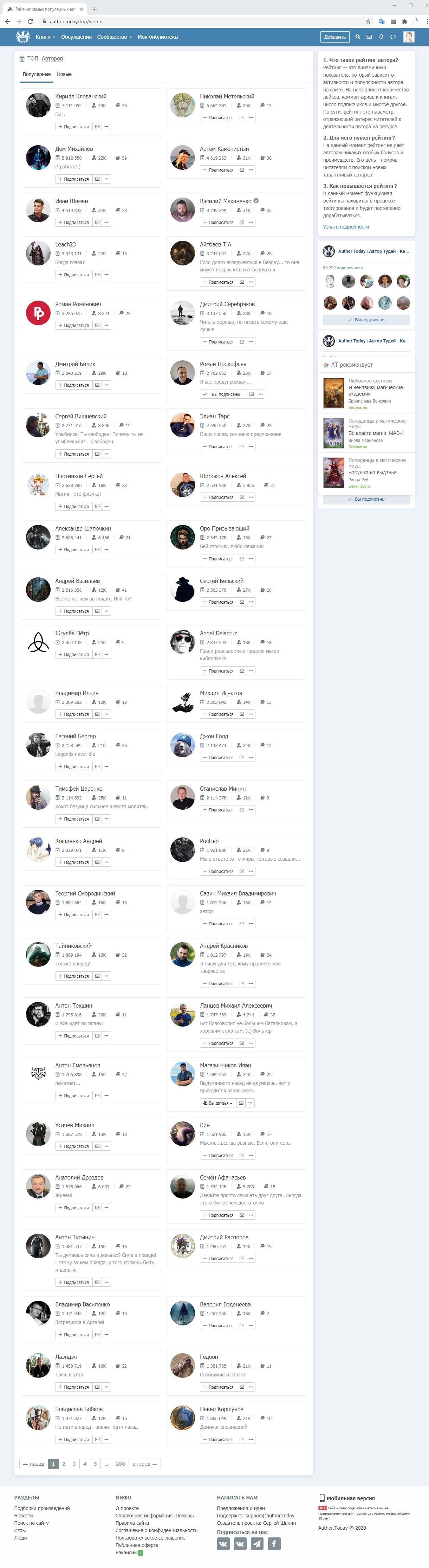 Итак, по состоянию на 25 ноября 2020 топ50 авторов выглядит следующим образом.