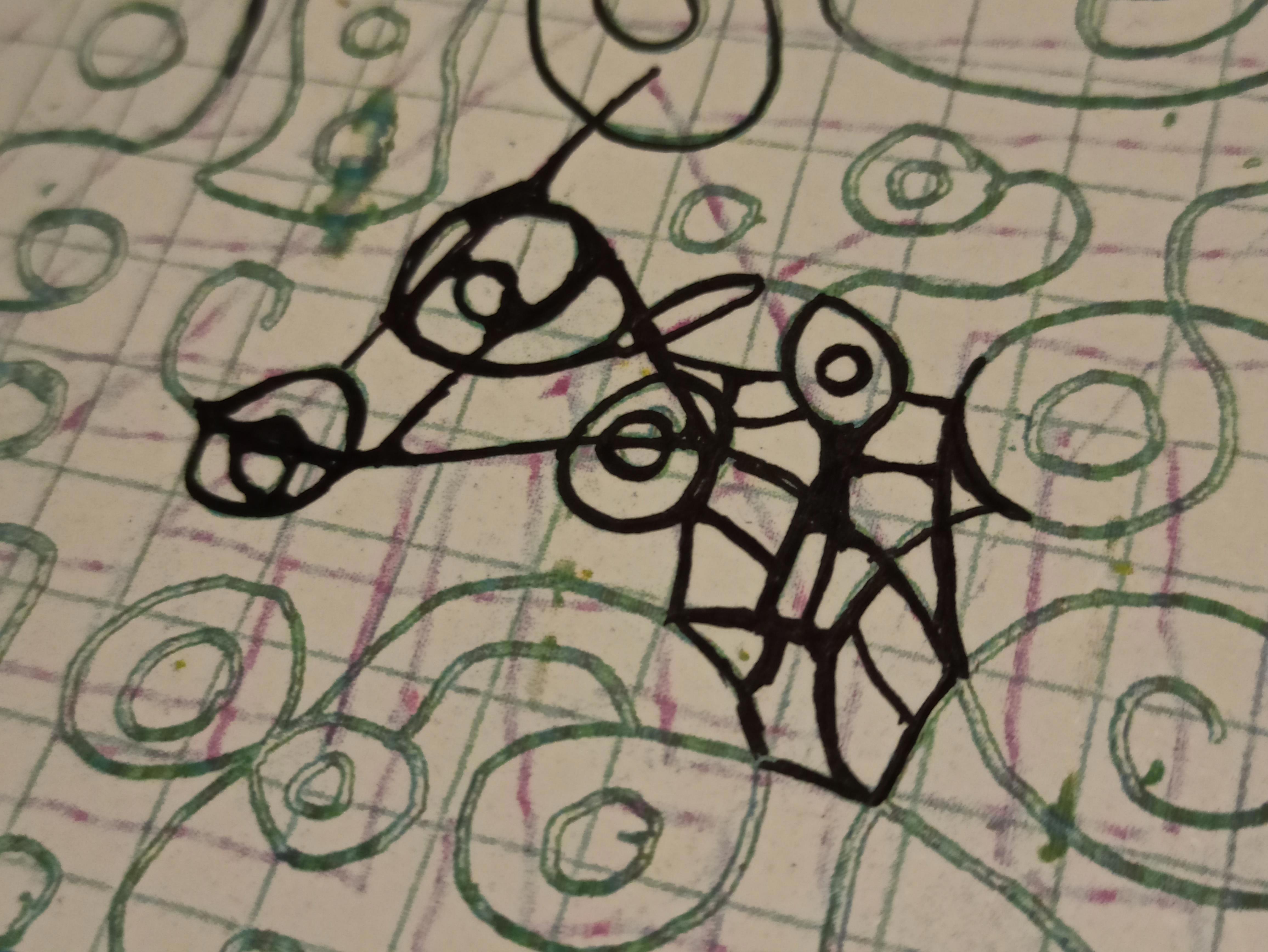 Ещё я смешиваю несколько набросков в редакторе и потом их обвожу руками по распечатке, снова скан...