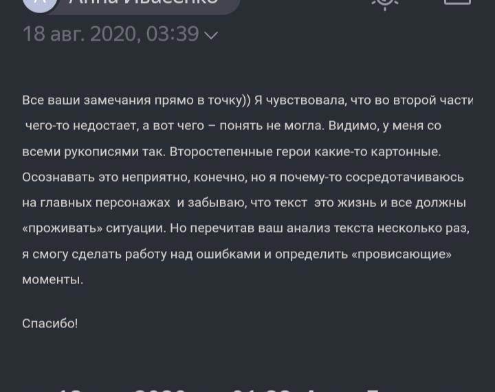 PP.S. Решила вставлять отзывы писателей, чтобы было понятно, что я не кусаюсь. А инфо обо мне - в профиле.