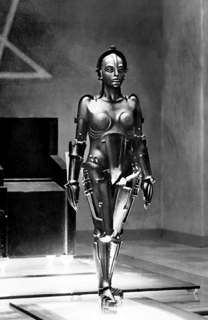 А теперь вернемся к нашим баранам…. Вне всякого сомнения если бы речь шла только об одном персонаже , а не об всем фильме в целом, то первое место за стильный костюм можно было бы присудить именно этому фильму. За костюм человеко-машины девушки Марии-Хель я смело бы отдал самый наивысший бал. Полюбуйтесь. Я просматривая фильм и увидев это чудо, и едва не потерял свою любимую сигару. Электрические схемы почувствовали давно забытые токи либидо и я испугался за целостность своей электропроводки. Начал активно отжиматься и приседать в надежде, все же, где ни будь ее встретить.