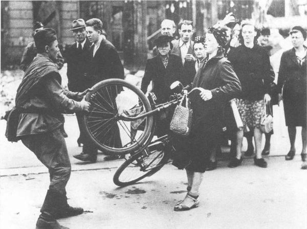 Вот это фото: «Советский солдат отбирает у немки велосипед»