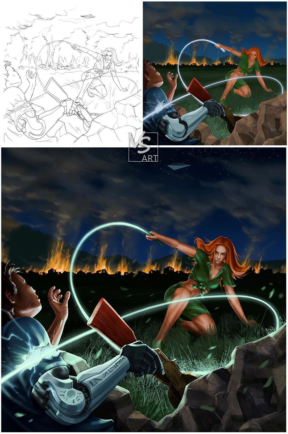 Автор: Салихов ВасильКрасивая, сильная, динамичная и огненно рыжая смерть с плетью в руках. Такую роль отдал этой роковой девушке автор книги "Культурные особенности" Александр Зарубин. Хронология создания арта ниже: