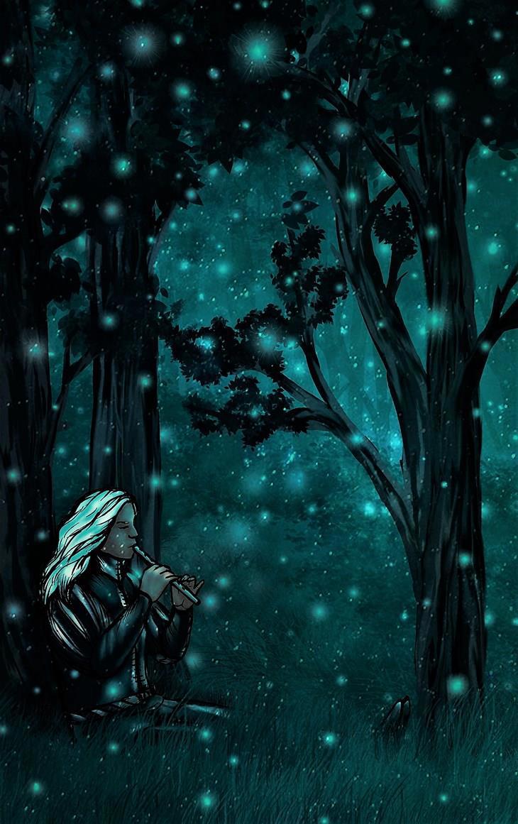 Приоткрыв полог, в щёлку я увидела, что Джастер сидит почти у самой воды. Нежный и красивый голос свирели разлетался над озером, и даже ночные птицы притихли, внимая красивой музыке. Дивная плавная мелодия уносила тревоги и успокаивала ум и душу. Я прилегла у приоткрытого полога, любуясь тёмным силуэтом музыканта и отдаваясь чарам свирели.