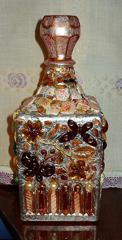 Вот такой я сделала графинчик из того, что в доме нашлось. Заполняла домашним вином и вдохнула надежду на удачное будущее. Подумала, пусть настоится и на новый год поделюсь с друзьями: немного счастья и радости всем полезно. ТУТ ЕЩЕ ЕСТЬ КРАСОТА
