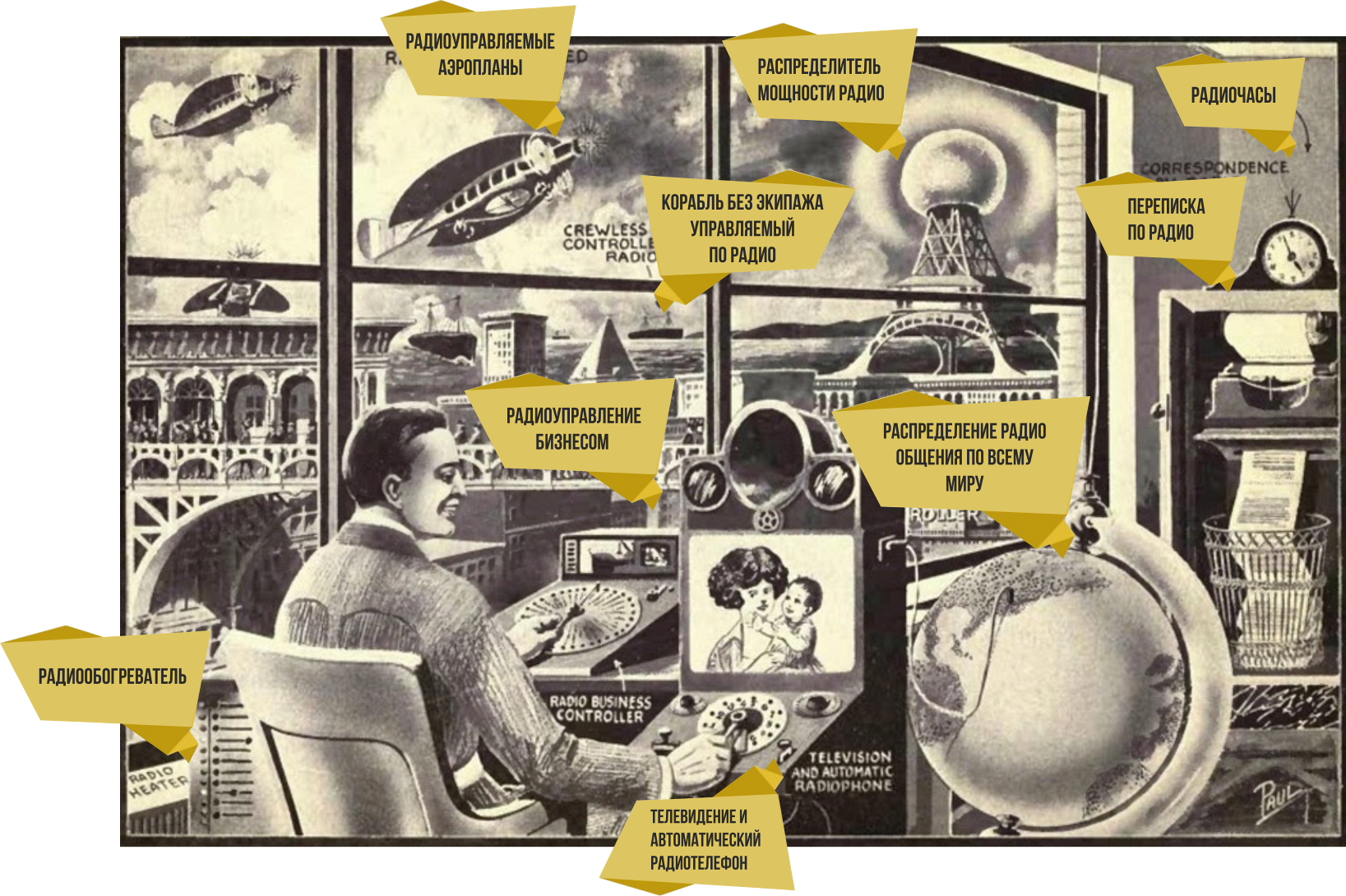 Хьюго пытался заглянуть в будущее, представляя себе как может измениться жизнь и быт обыкновенного человека. Как уже говорилось он не только мечтал, но и пытался создавать различные вещи, которые в будущем могли бы появиться в каждом доме. По его мнению очень многие домашние приборы и устройства должны будут работать с помощью радиосигналов.