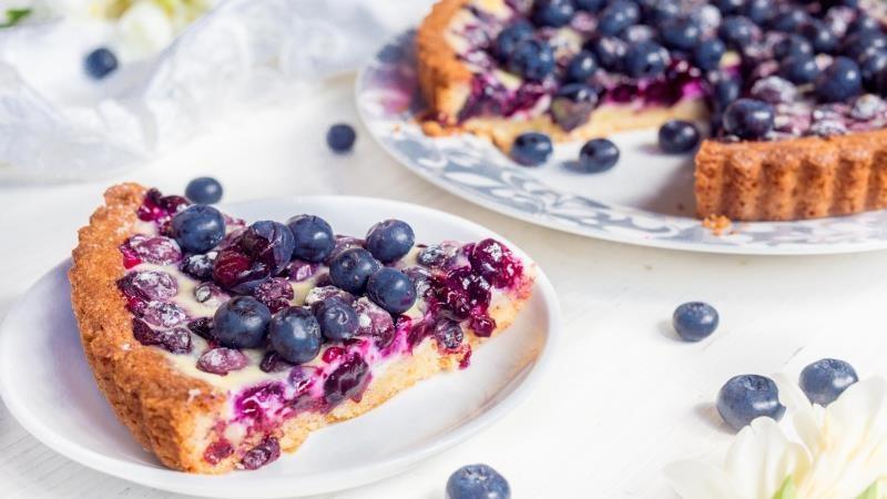 Начнем с приготовления теста. Нам необходимо порубить ножом или специальным приспособлением холодное масло с мукой, солью, предварительно измельченным миндалем и творогом. Добавляем яйцо и хорошенько перемешиваем. Форму для выпекания выкладываем пекарской бумагой. Отправляем в нее наше тесто. Разравниваем и формируем небольшие бортики. В нескольких местах протыкаем вилкой и отправляем примерно на 1 час в холодильник. Теперь можно заняться начинкой. Для этого соединяем яичные желтки со сметаной, сахаром и ванилином. Хорошенько перемешиваем. Выливаем полученную массу на охлажденное тесто. Сверху выкладываем голубику (немного оставить для украшения). Если вы используете ягоду в замороженном виде, то предварительно размораживать ее не нужно. Отправляем наш будущий пирог с голубикой и творогом в предварительно разогретую до 200°C духовку. Готовиться десерт будет порядка 30-40 минут. Когда начинка загустеет, пирог можно доставать из духового шкафа. Затем останется его остудить, украсить оставшейся голубикой и нарезать. Рецепт с сайта AG