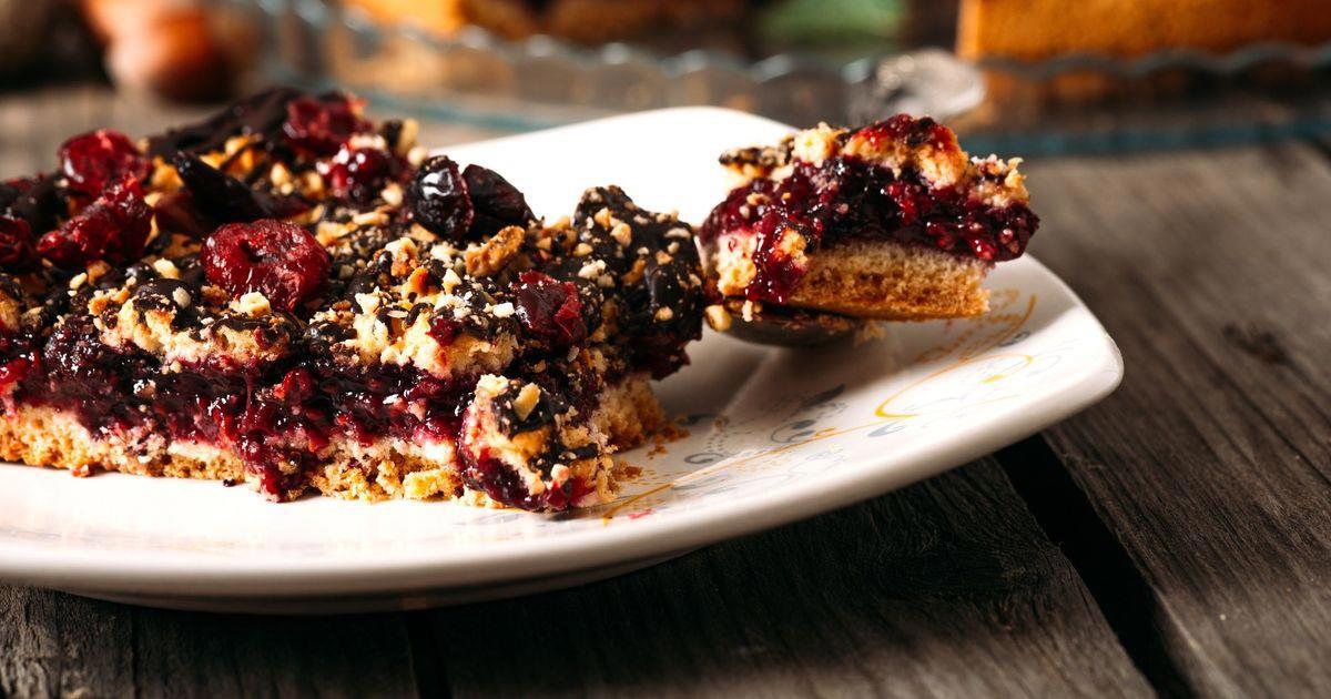 Займемся готовкой. Растопим сливочное масло, всыпем сахар и поставим на средний огонь. Постоянно помешивая, растворим сахар, снимем с плиты и немного остудим. Введем ванильный сахар и яйца, взобьем венчиком до однородной консистенции. Просеем муку вместе с разрыхлителем, всыпем в масляную массу и тщательно перемешаем. Измельчим орехи блендером или в комбайне до средней крошки, добавим их с ягодами в тесто и перемешаем, чтобы они распределились равномерно. Застелим бумагой дно и стенки высокой формы для выпечки диаметром 18–20см, выложим тесто и отправим в разогретую до 180°C духовку примерно на 35 минут. Остывший пирог украсим сахарной пудрой. Рецепт из проекта "Время есть" Лайфхакер