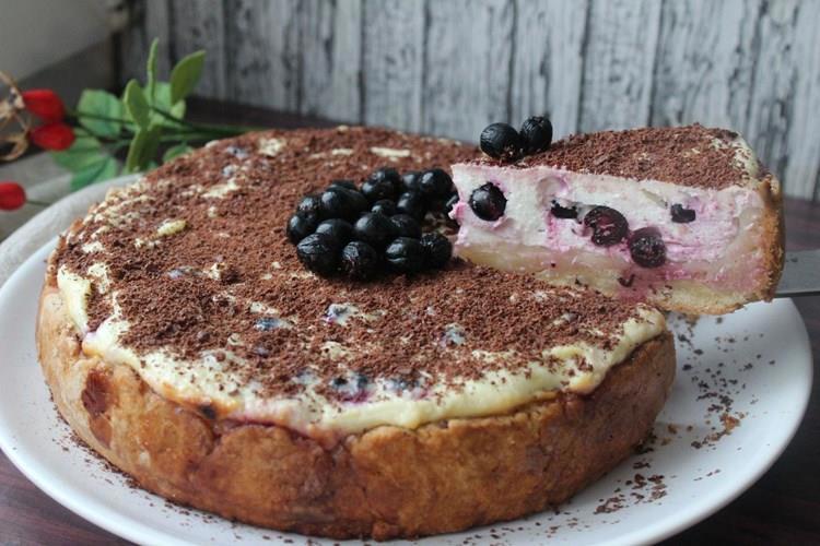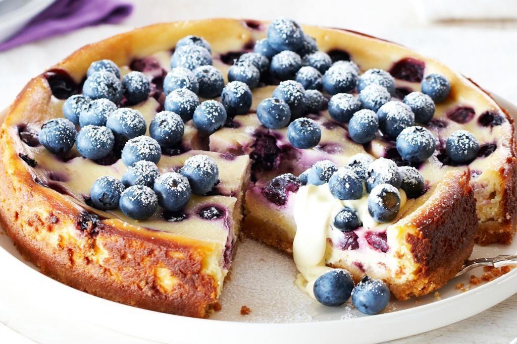 Займемся готовкой. Духовку предварительно разогреваем до 200°C. Измельчаем печенье в блендере. Растопим сливочное масло и смешаем с печеньем. Выложим тесто в форму для выпечки со съемным бортом диаметром примерно 24 см. Выпекаем основу в духовке на среднем огне в течение 5-7 минут. Остужаем. Теперь можно заняться начинкой. Для этого смешаем в миске сливочный сыр, творог, сахар и крахмал. Добавляем яйца по одному и перемешиваем. Вольем сливки. Растопим шоколад и добавим его в полученную смесь. Выльем смесь на основу и посыпаем половиной ягод голубики. Выпекаем в центральной зоне духовки в течение 15 минут. Снизим температуру в духовке до 110°C и готовим еще на 1,5 часа. После появления золотистой корочки накрываем чизкейк фольгой. Выключим духовку, приоткроем дверцу и оставим чизкейк на 40 минут. Достанем чизкейк из духовки, оставим на столе еще на 30 минут, а затем уберем в холодильник на несколько часов. Перед подачей украсим чизкейк оставшимися ягодами голубики. Рецепт взят с сайта SantaMaria.