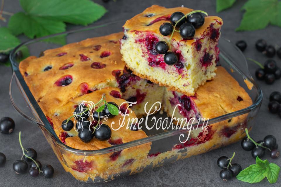 Все продукты обязательно должны быть комнатной температуры. Займемся готовкой. Сразу разогреваем духовку до 180°C. Соединяем муку с разрыхлителем и щепоткой соли, все тщательно перемешиваем и просеиваем через сито. В объемную посуду разбиваем куриные яйца и добавляем сахар. Взбиваем миксером на высокой скорости до побеления массы и увеличения ее в объеме. Кристаллики сахара должны почти полностью раствориться. Следом добавляем сметану любой жирности (чем жирнее, тем вкуснее и нежнее получается готовый пирог) и вмешиваем сметану в яичную массу. Насыпаем мучную смесь и быстро вмешиваем ее в жидкую основу для пирога. Тесто получается полностью однородным, не жидким, но и нестабильным - оно плохо держит форму и практически сразу растекается. Смородину моем и обсушиваем. Если будете использовать замороженные ягоды, размораживать их не нужно. Припудриваем ягоды чайной ложкой пшеничной муки (берем от общего количества), чтобы в процессе выпечки они не ушли на дно теста. Берем форму для выпечки и смазываем ее растительным маслом. Чтобы выпечка не прилипла, можно застелить форму пергаментной бумагой или сделать так называемую "французскую рубашку". Тонким слоем смазываем форму сливочным маслом, затем обсыпаем мукой, стряхивая излишки. Мой вариант - просто растительное масло (тогда мука не нужна). Выкладываем в форму половину теста и равномерно распределяем его. Выкладываем часть ягод. Накрываем второй половиной теста. И еще немного ягод поверх. Выпекаем пирог 40 минут на среднем уровне до румяного цвета. Затем достаем пирог из духовки и даем ему около 10 минут остыть в форме. При желании можно посыпать выпечку сахарной пудрой. Рецепи с сайта finecooking.ru