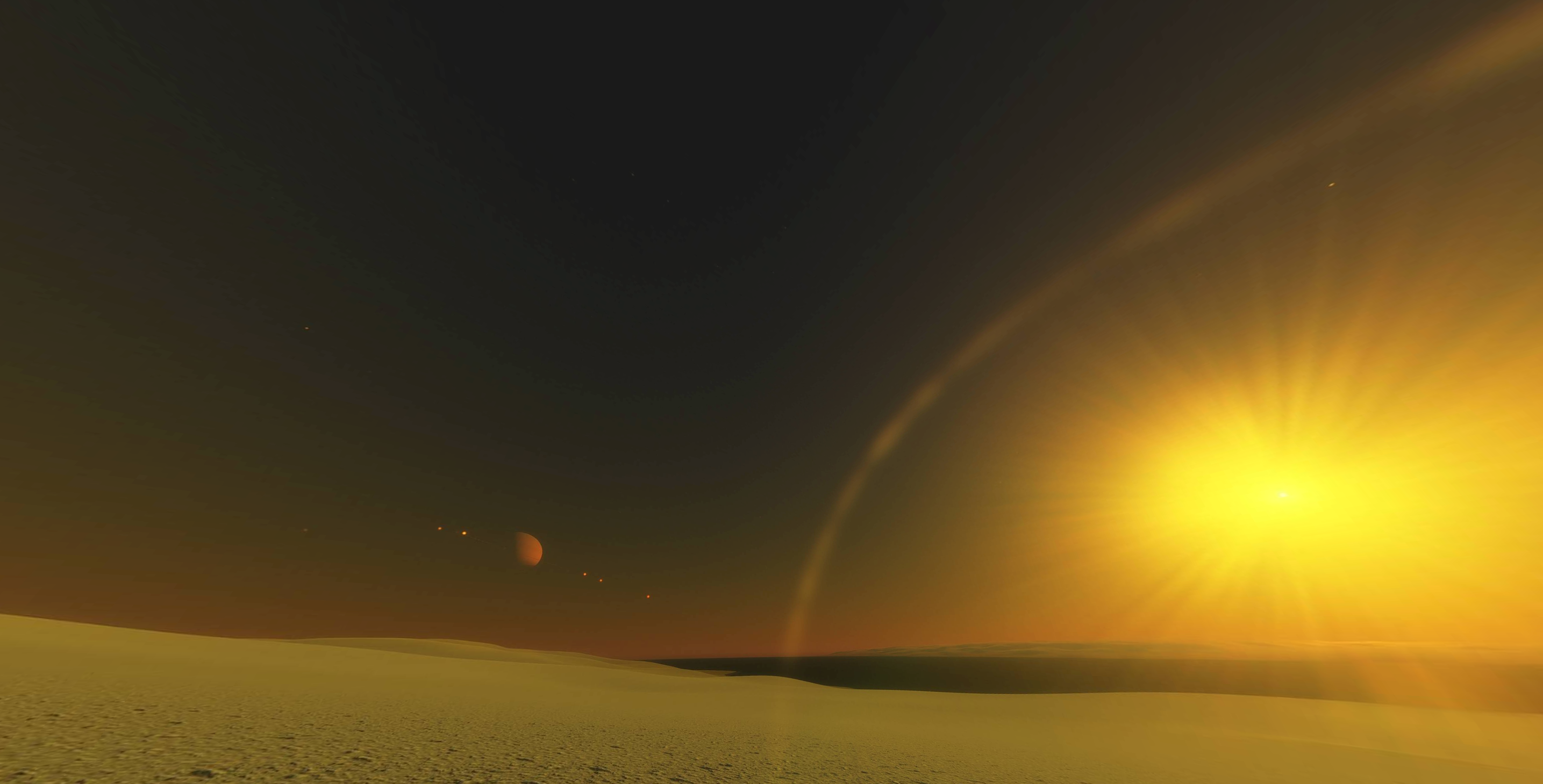 Майда Инсула, вид на Сатурн. Интересно, почему Солнце такое яркое, оно же далеко.