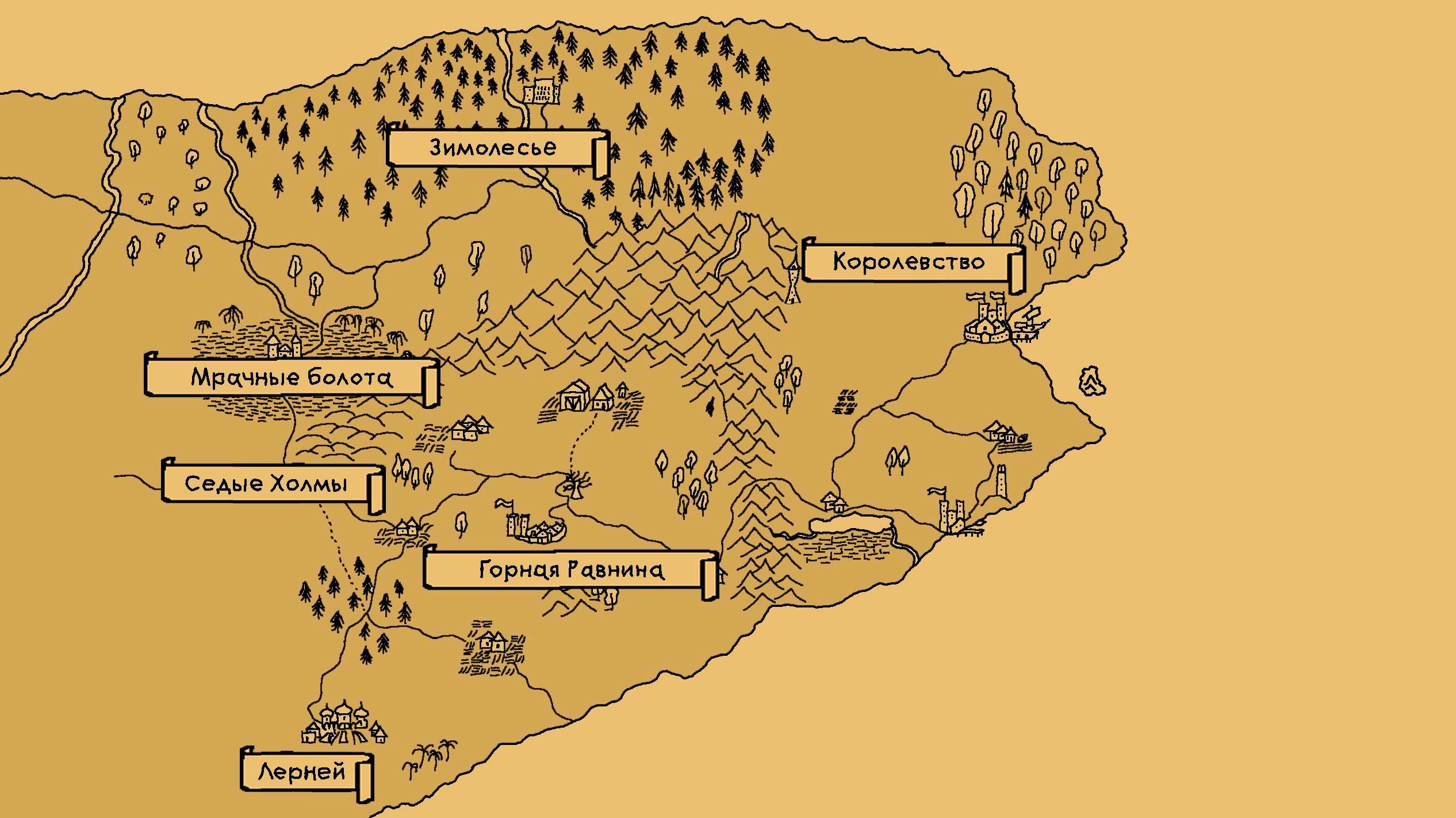 Первые поселенцы на равнину пришли из Королевства. Поэтому в теории Горная Равнина одна из его провинций. Только вот путь сюда совсем не близкий. Поэтому существует она как-то по отдельности от остального мира. Пути сюда вообще два было — один морем плыть до Лернея и оттуда топать пешком по степям и пустыням, другой — тащиться через Зимолесье, Мрачные болота и Седые холмы. То еще удовольствие. Именно через него и прошли те самые первые люди. Тут они и остались, видимо, идти назад совсем не хотелось.