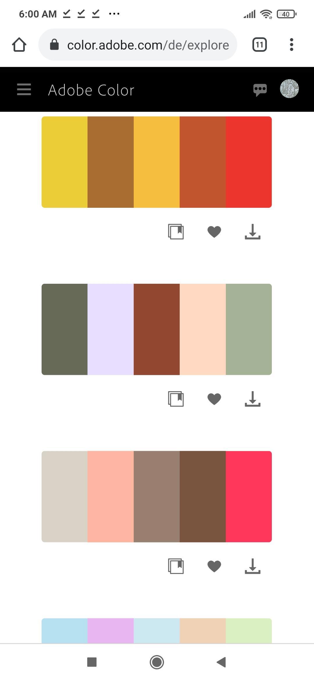Приложением Adobe Capture можно делать разные интересности, в том числе и сграбить цвета откуда нибудь. Например вам нравится вид или какой то арт своим цветовым решением.