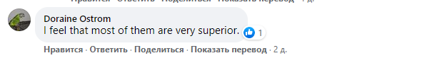 Дорейн Остром уверена, что большинство русских просто superior (я бы перевёл как «топчик»). Пользователь Димо Займович (из Славонии) ставит лайк.