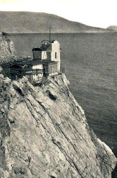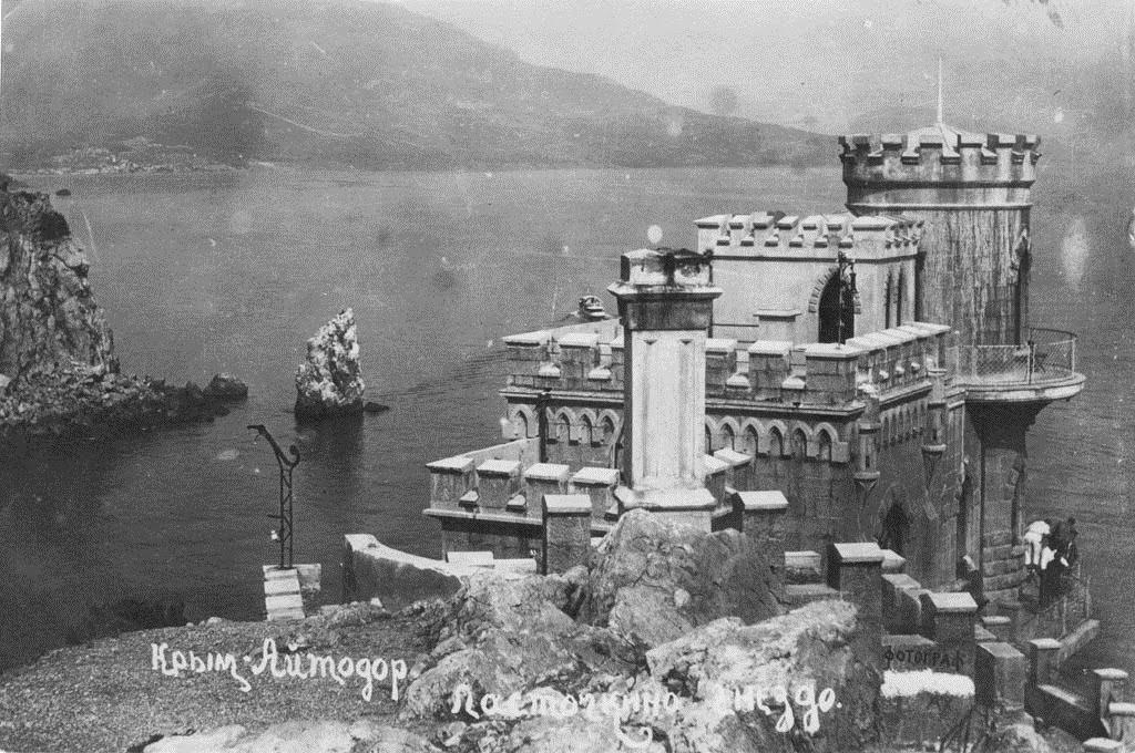 Ай-Тодор пансион для больных. Этот пансионат, не смотря на свои небольшие размеры, считался лучшим на Южном берегу Крыма. В пансионате был устроен, на одном из краёв скалы, чудесный сад. Однако при одном из землетрясений скала обрушилась, и сад погиб. Уже тогда дачу доктора, «напоминающую каменные гнезда осетинских деревушек на Военно-грузинской дороге», называли «Ласточкиным гнездом». Вот такие существуют легенды о названии этого замка.