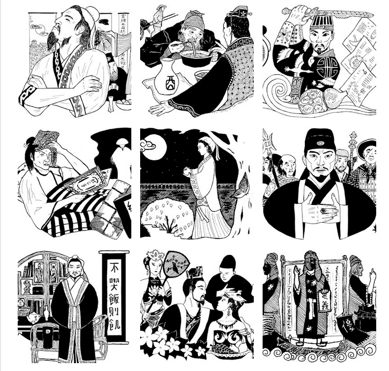 Да-да, те самые чёрно-белые рисунки, так напомнившие о старых добрых советских книгах. В ассоциациях мигом проскочили Знак Фэн на бамбуке, Речные заводи, Чжуаньская парча (маленькая, но очень душевная книжка, напечатанная в Пекине по-русски специально для иностранцев).