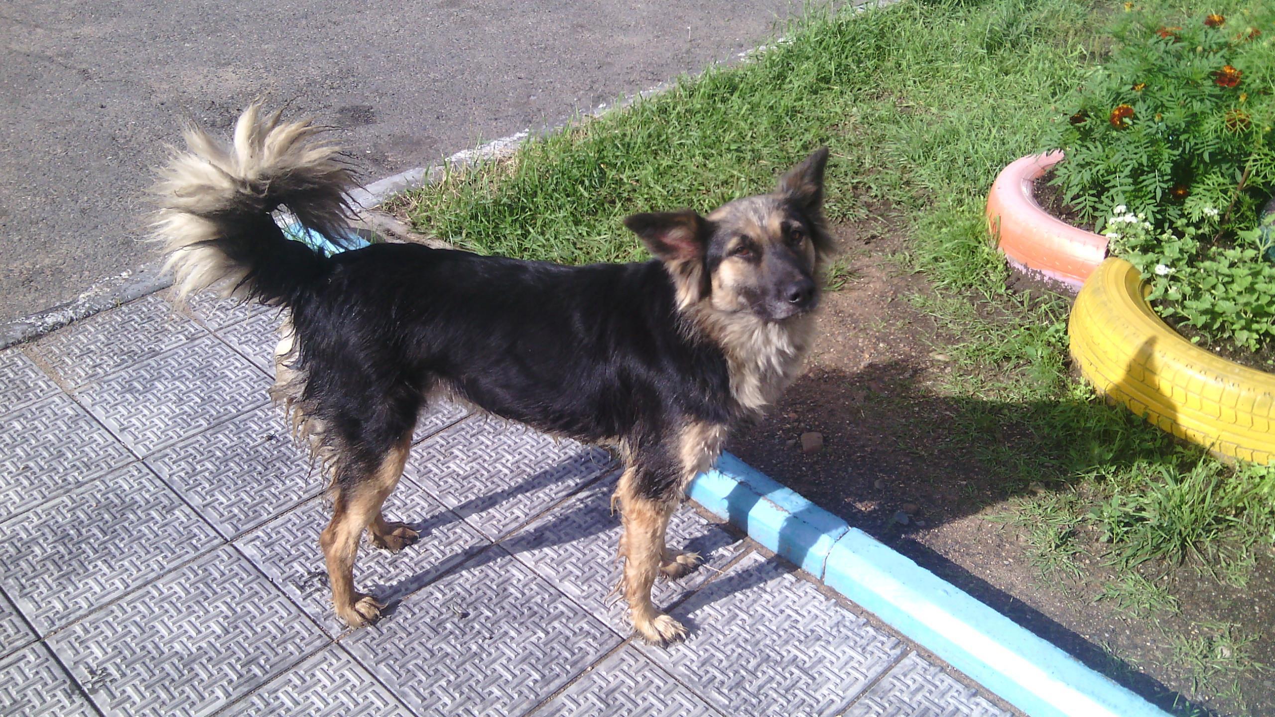 Как вам? Эта очаровашка бегала за одной бабушкой всё время (та её подкармливала), но и к нам привязаться успела. В тех дворах, где мы дворничали, встречались с ней частенько. Но потом, ещё до нашего отъезда, начали охоту на бездомных собак и то ли её просто поймали, то ли что-то похуже сделали, тут уж, как говорится, история умалчивает.