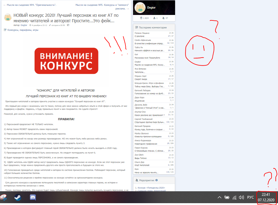 Вот ссылка на пост: https://author.today/post/126696 Если кто хочет проверить, его удалять я не стану даже если на меня натравят Сатану... (он так-то мой близкий друг, в одном котле выросли...эх...было время... Вот фото кто не верит, точно не фотошоп, я не умею)