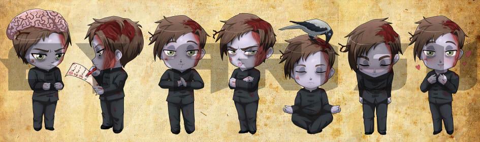 Автор: ArisuК выходу цикла "Мертвяк" (https://author.today/work/102051) мы с Кириллом подготовили серию чиби-стикеров с разными эмоциями. Кирилл их придумывал, я рисовала.. И они лежали в закромах почти месяц, ждали своего часа. Сейчас я могу их показать, но только в таком "зашкваренном" виде - пожелание заказчика)