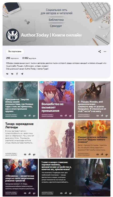 P.S. Мне сдали явки-пароли. У автор.тудей.... нет не так, а вот так Autor,..опять не так Author.today (догадалась подсмотреть в адрес сайта) есть свой дзен.канал!