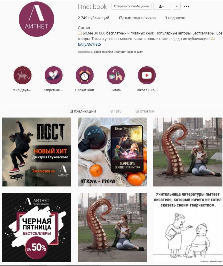 У литнета - канал похож на частный, но здесь пачками каждый день "живописные" заманухи на чтиво, и все ведут именно на литнет! (интересно сравнить подписчиков и аудиторию литреса и литнета - у литнета подписчиков меньше, но аудитория гооооораздо больше, потому что в постах очень большие куски текстов из порно женских книг, которые можно читать даже отдельным рассказом на канале, да и заголовки у них в разы звучные и заманушные).