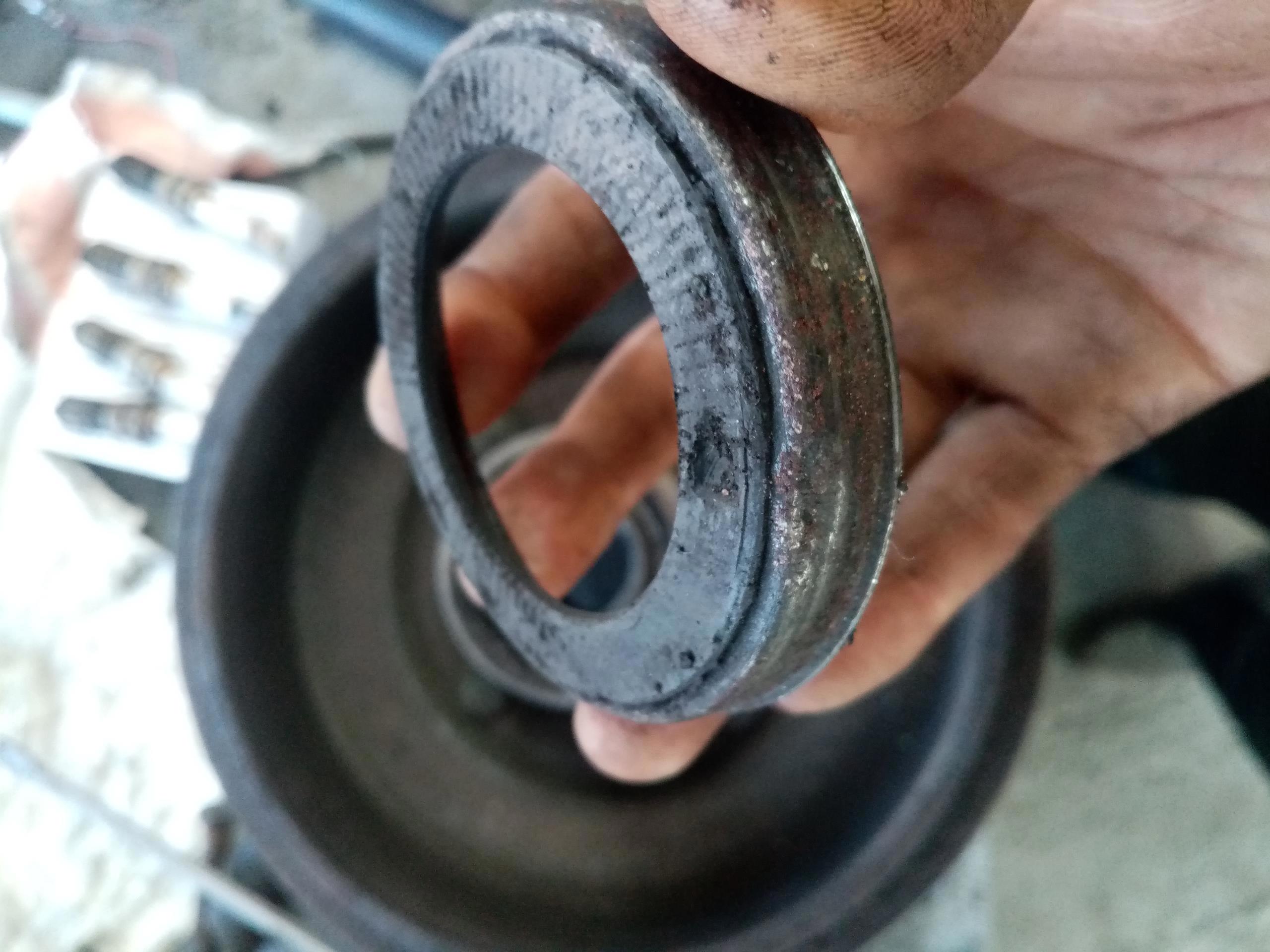История покупки этой машины покрыта мраком, известно только то, что она куплена в трейд-ин у диллера. Вполне себе официального, с документами. И кучей проблем. Диллер рекомендовал заменить шрусы, ремни навесного, заднюю ступицу в сборе, и ещё много всякой дичи, которая вообще замены не требовала. Проблемы тут были вообще не там... Самая заметная - лужи масла на месте стоянки. Выяснили, что тёк датчик давления масла, владелец заказал новый. Втулки стабилизатора были настолько умотанные, что стаб можно было шевелить вверх-вниз рукой. Представляю какой в машине был грохот.... Также горела ошибка абс, диагностика показала несоответствующие данные с датчика. Сзади тормоза барабанные, и там есть машнитное колечко, которое датчик и читает. Предположили что оно слетело, но нет, кто-то когда-то по нему стукнул предположительно молотком.