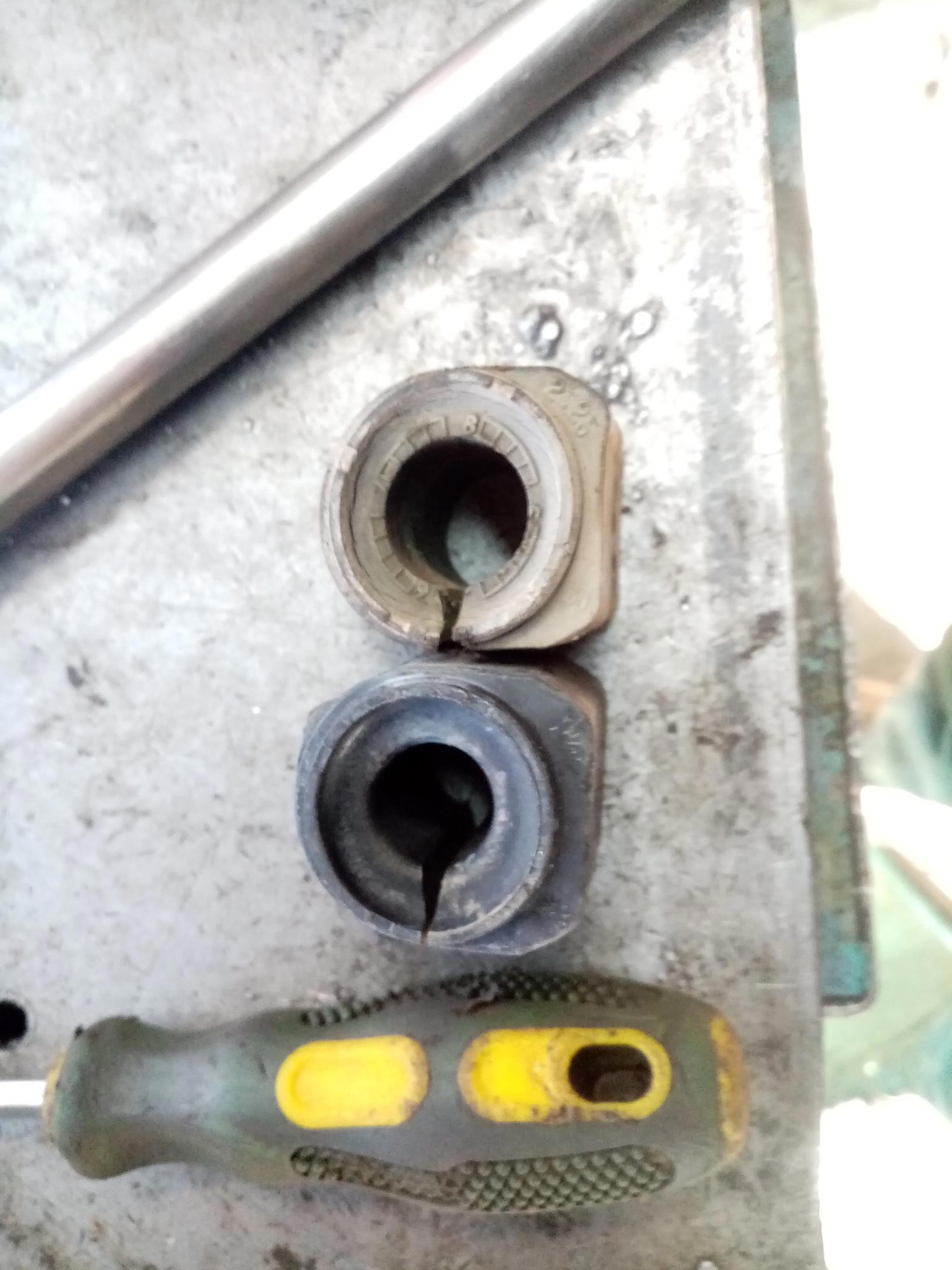 К обломышу приваривали гайку и откручивали, 2 раза гайки отрывались, на 3 раз выкрутился. Втулки заменил. Старые стали "немного" больше новых.