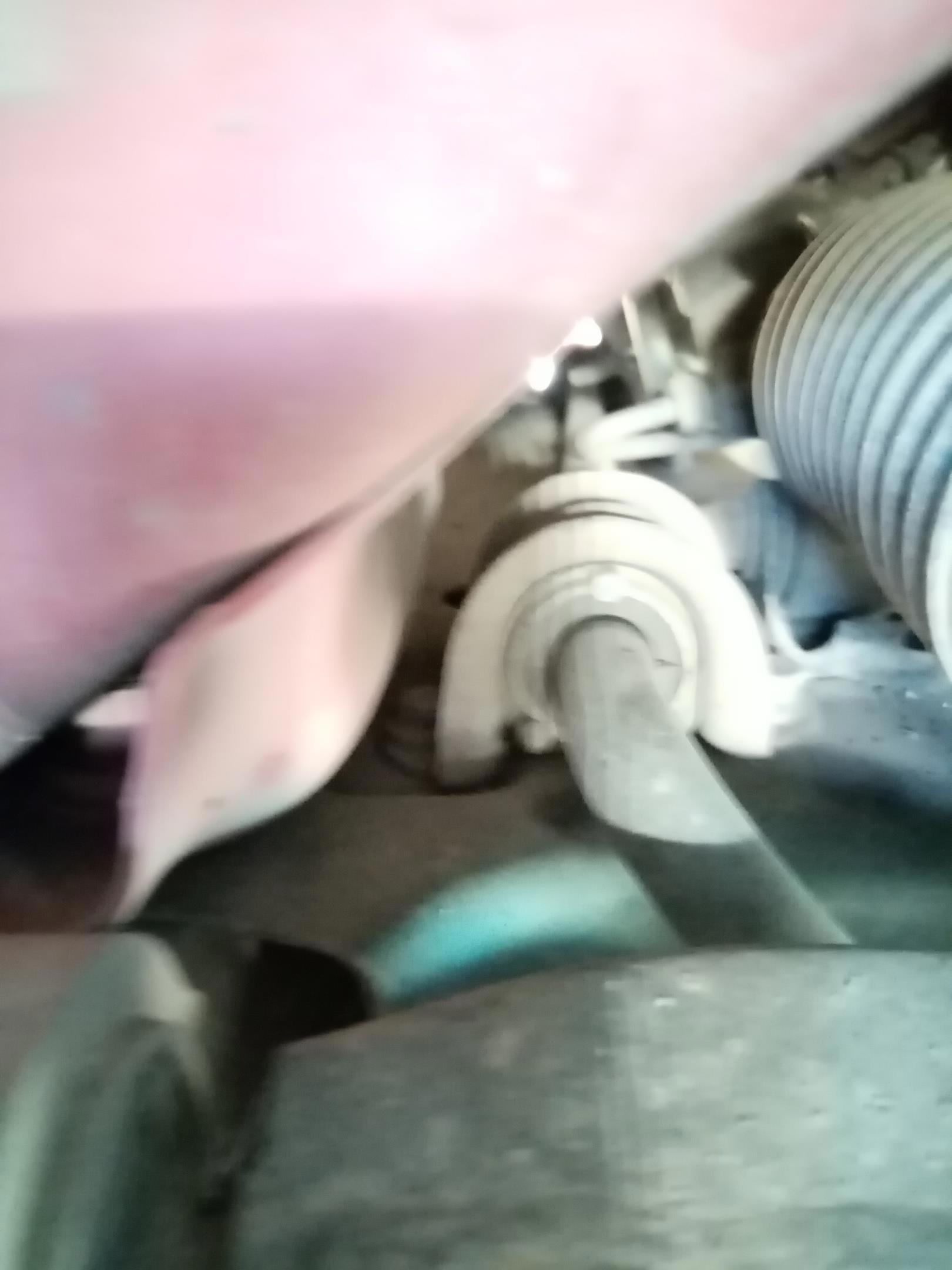 Самое интересное было - замена втулок стабилизатора. На фото видно что крепление втулки прямо под лонжероном. А это значит задний болт не достать, не вывесив или не сняв подрамник. Снимать мне было лениво (но потом всё равно пришлось...), поэтому я его вывесил.