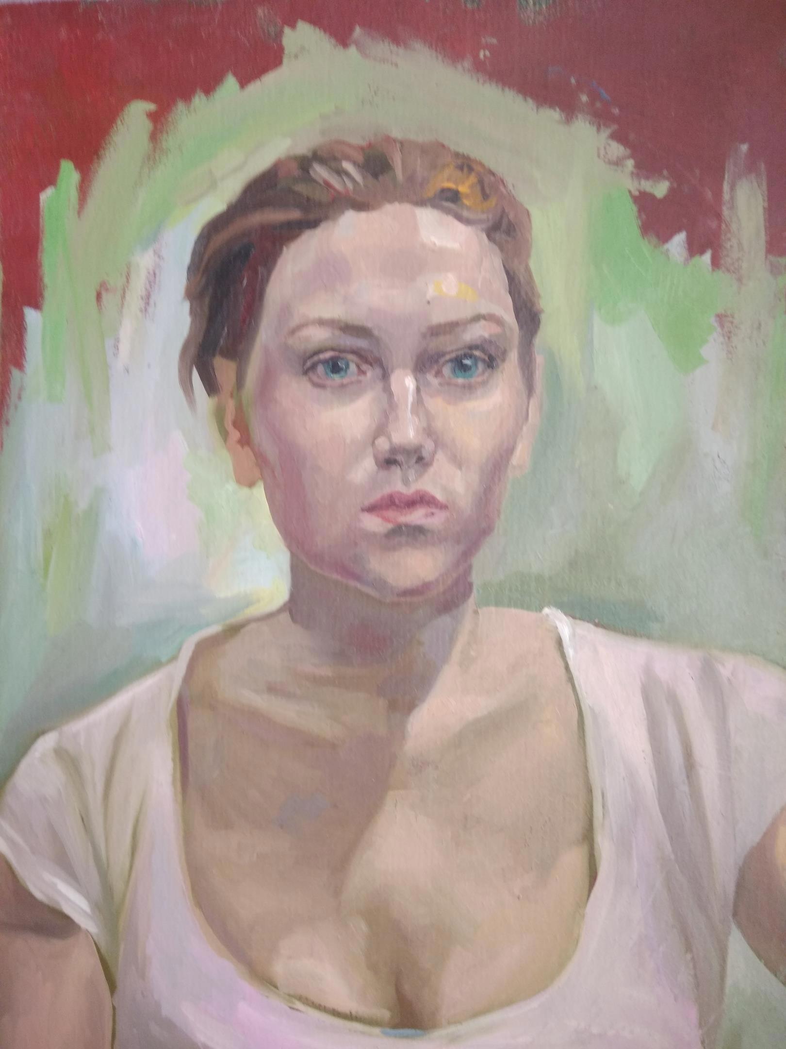 Портрет маслом сходу не смог найти, но он тоже где-то есть. Поэтому дополню автопортретами Леры: