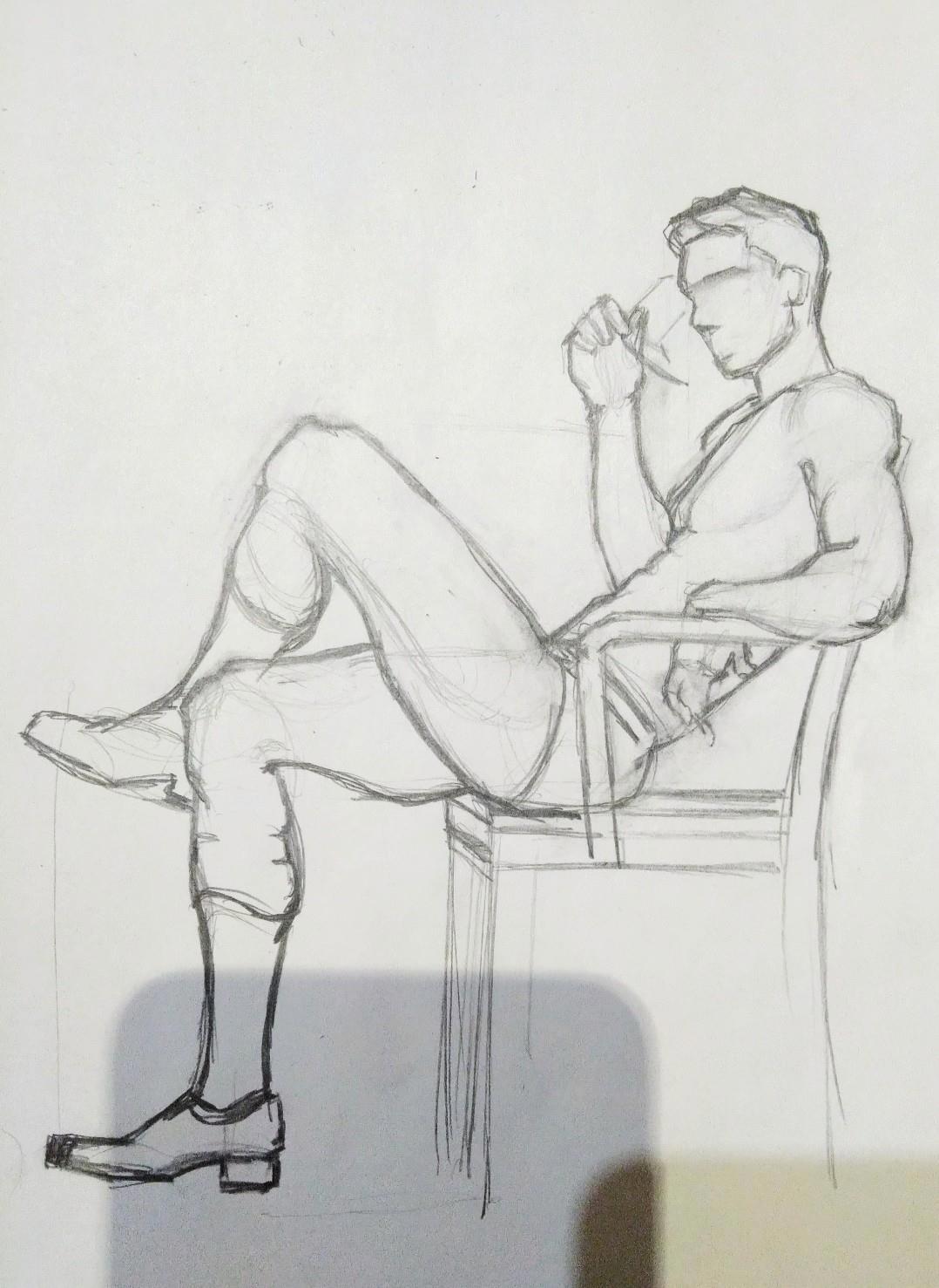 Немного порисовала. Наброски людей и этап рисунка с лисой (кошкой?)