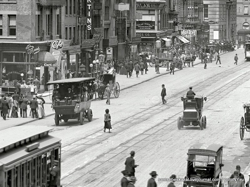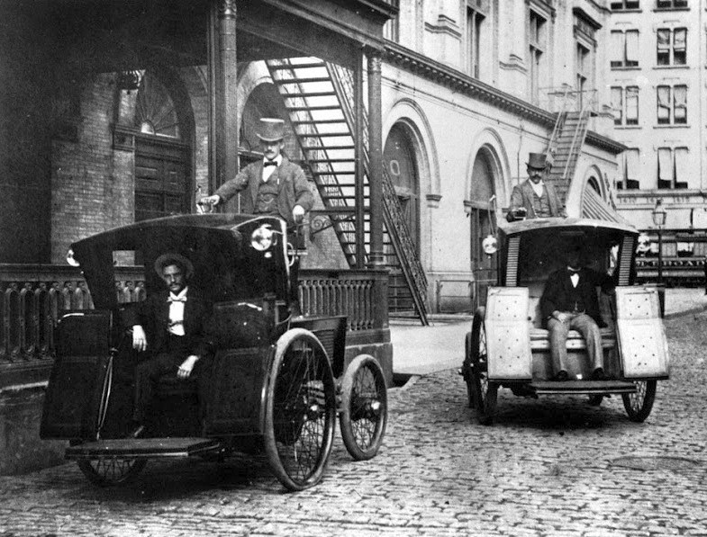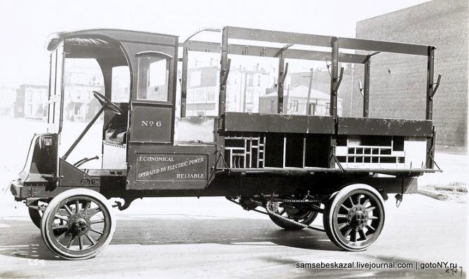 Нужно заметить, что назначение электромобилей также было различным. Кроме «легковушек» делали и грузовики, и туристические. Большое распространение получили электротакси. Первый такой серийный электомобиль Electrobat был сделан в Филадельфии и на рынке пассажирских перевозок в Нью-Йорке в 1896 году появилась компания Electric Vehicle Co. А других такси тогда ещё вообще не было… Electrobat заряжался 8 часов и мог проехать 40 км на скорости около 30 км/час. Достаточно быстро придумали заменять блок аккумуляторов. В 1900 году большинство машин в Нью-Йорке были электромобилями. Также было много паровых машин. Собственно, автомобили занимали почётное, хотя и третье место. Город вздохнул свободно – проблема навоза на улицах стала не так остра.
