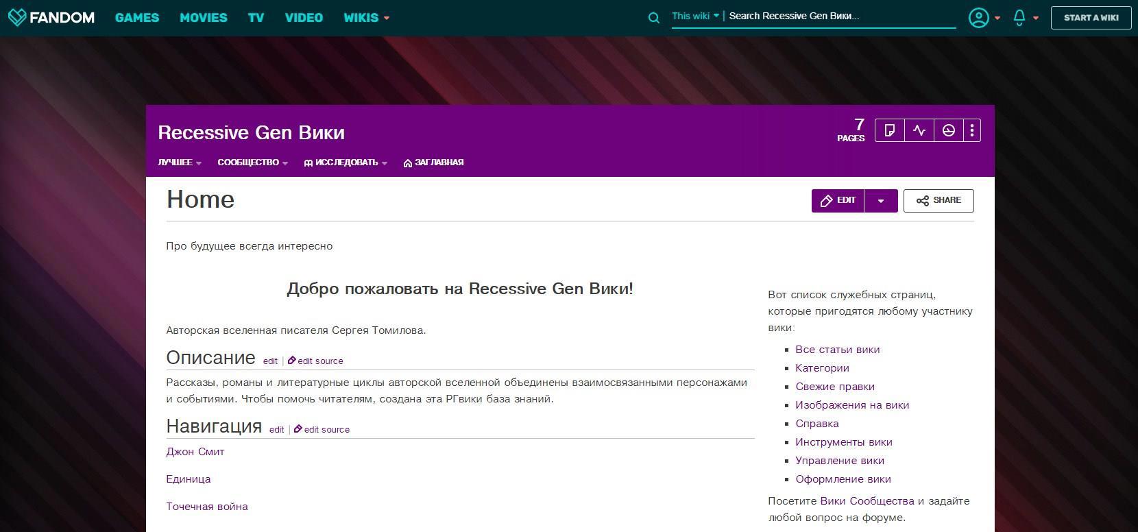 Опять же, придется подтянуть английский для полноценного использования, ну и владение скриптами. Как минимум сначала необходимо зарегистрироваться и найти заветную кнопочку «create a wiki». Через пару часов работы может получиться что-то подобное: