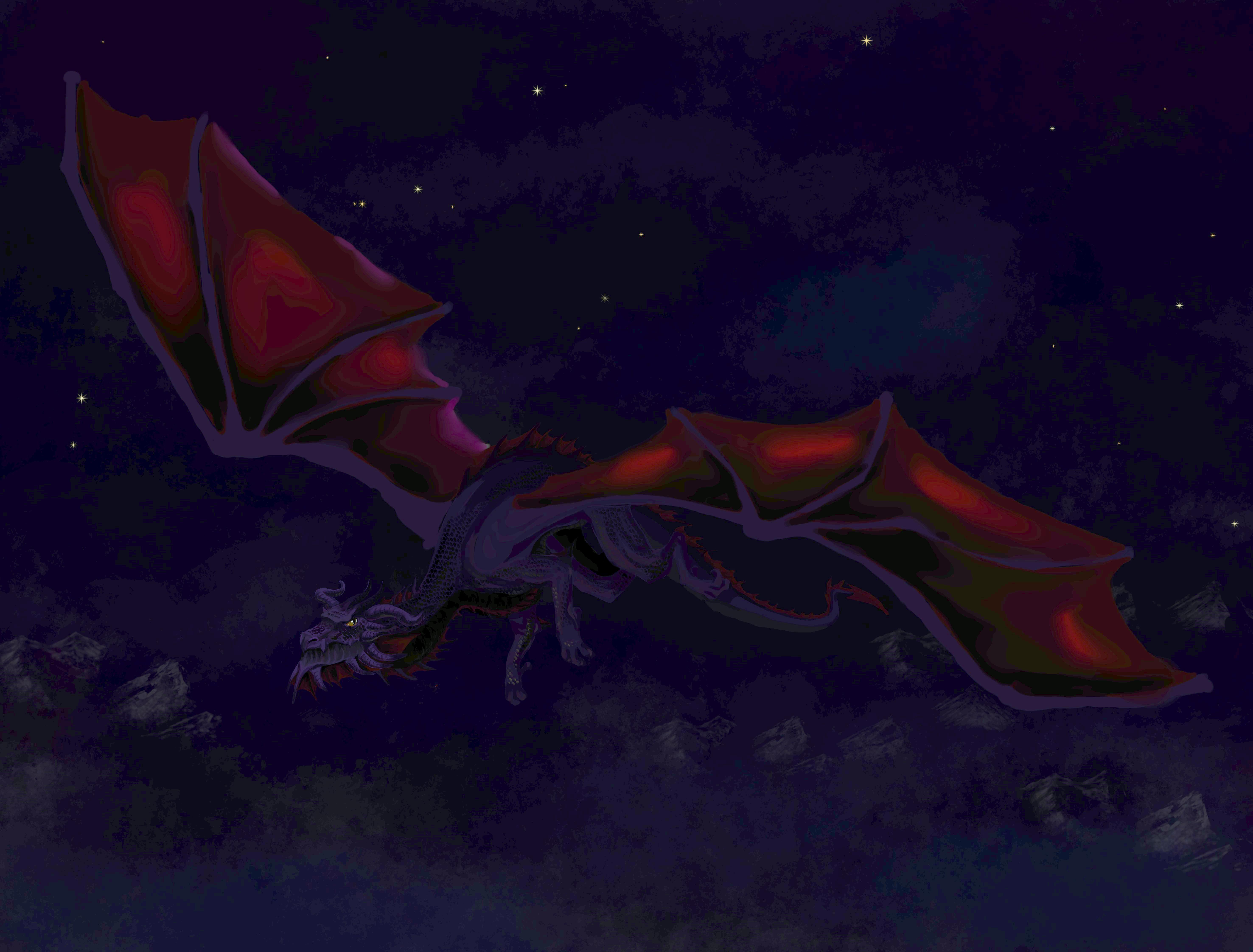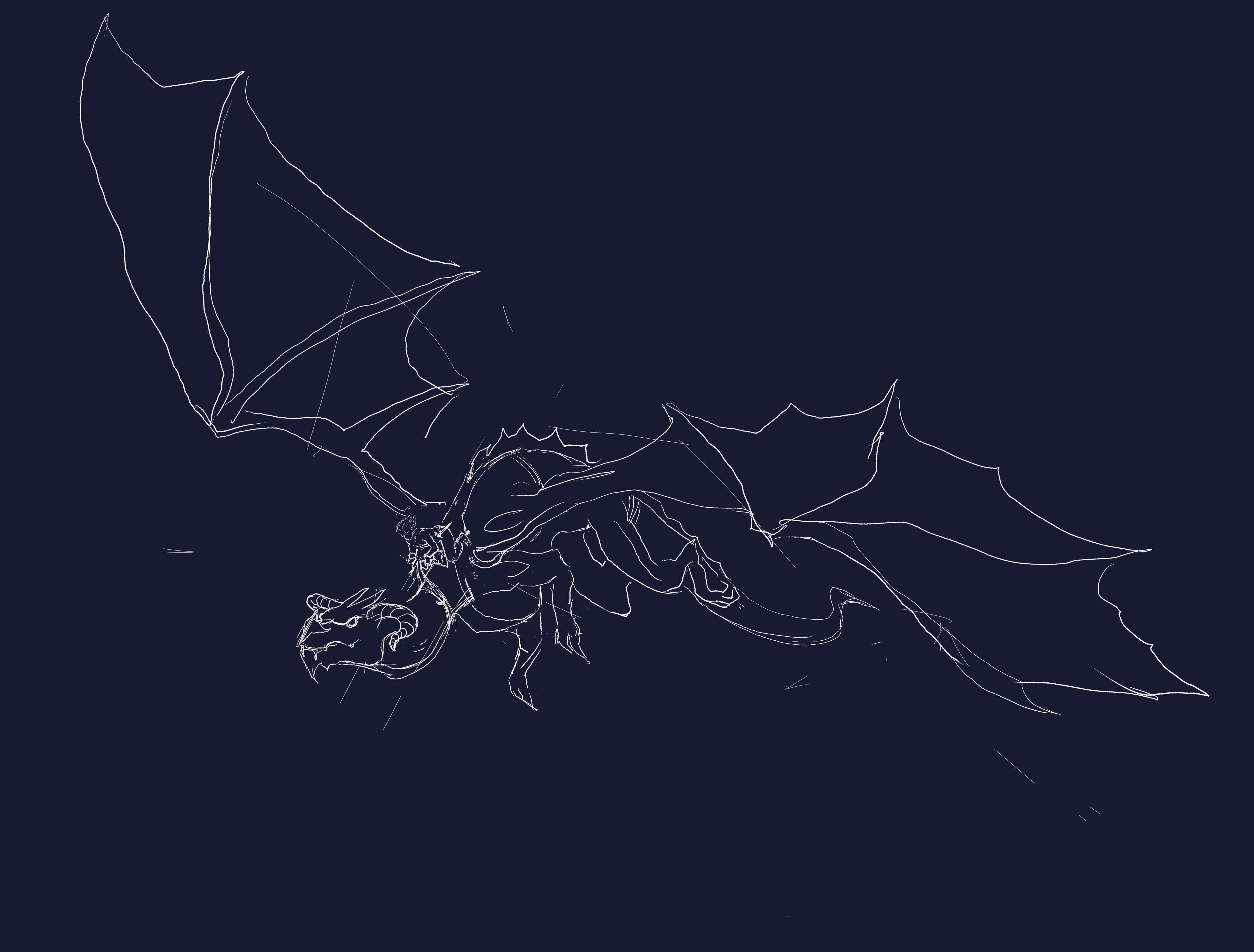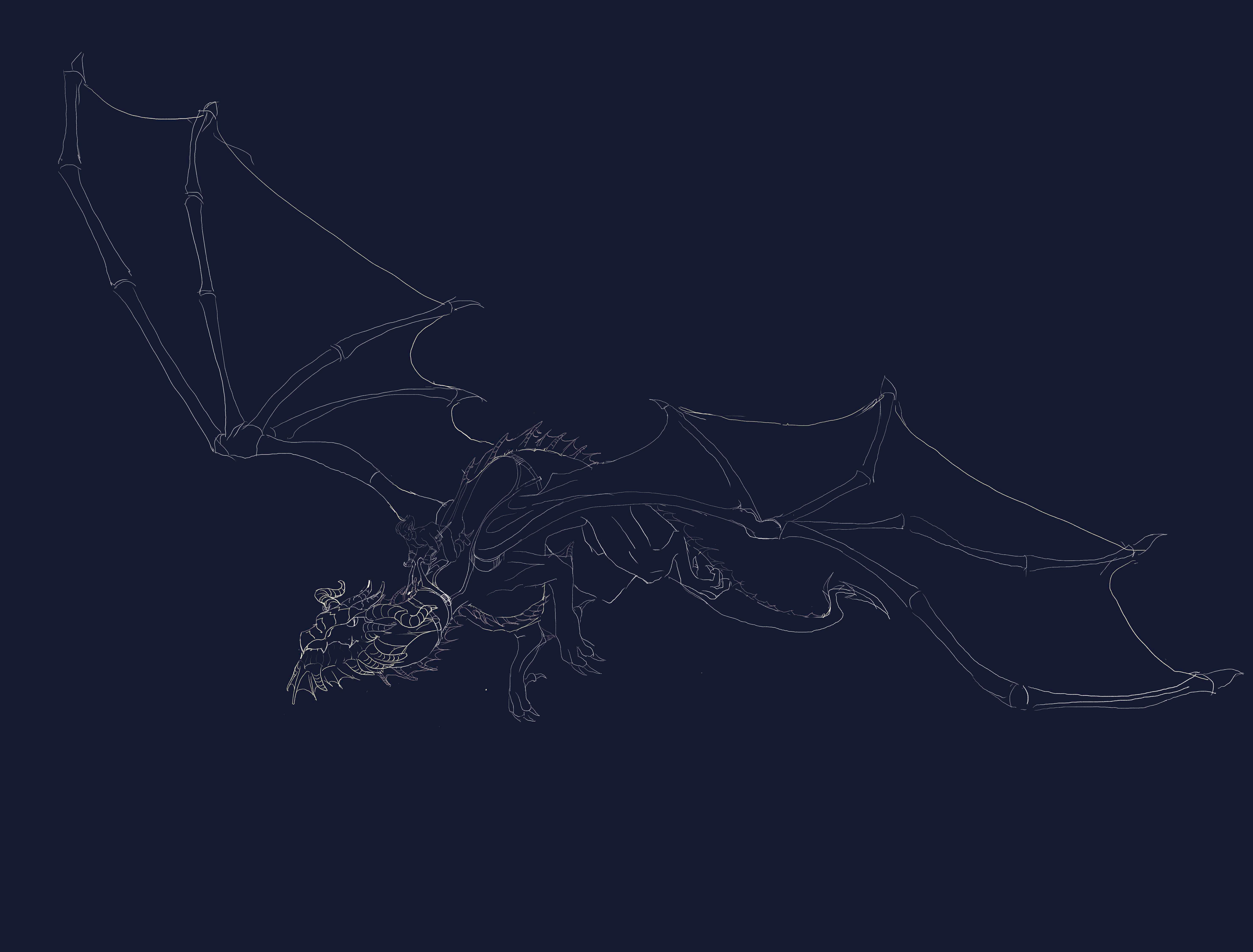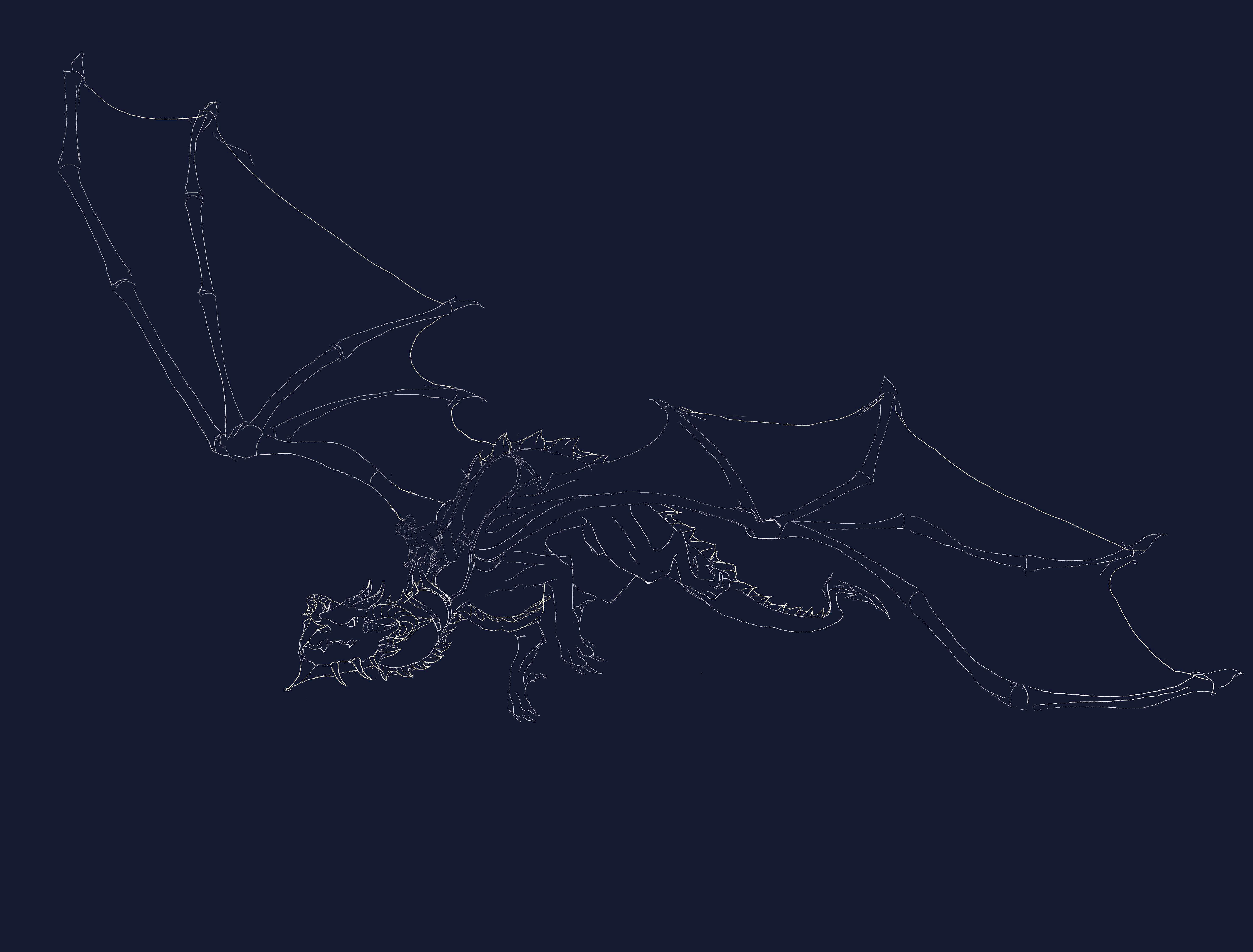 . Ничего поправлю позже, добавлю деталей, исправлю всполохи на крыльях, косточки прорисую. Было бы классно поместить под драконом полыхающую деревню