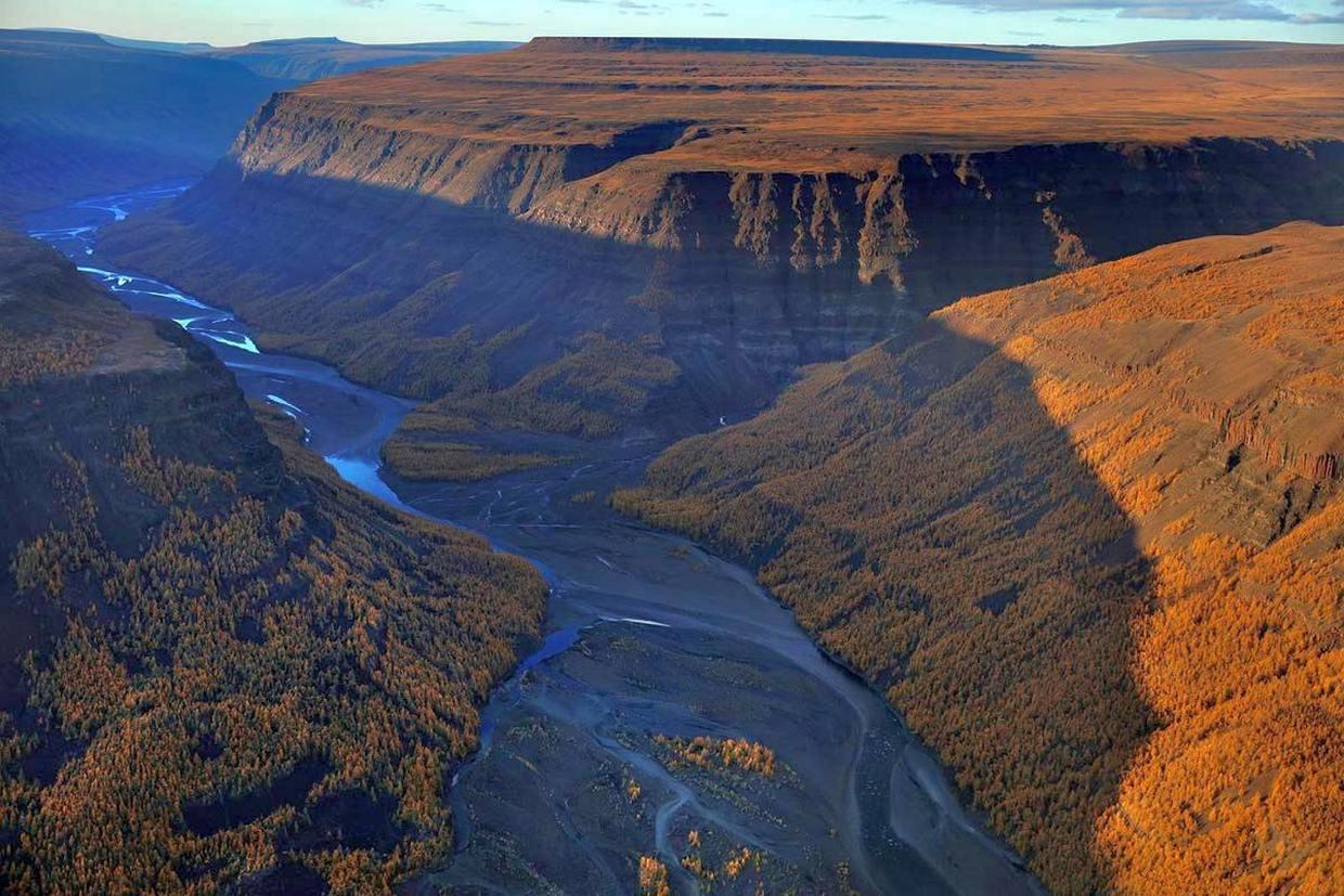 Из всех земных траппов нам интересен один – тот, который в Сибири. Это место так и называют – Сибирские траппы, которые находятся на Восточно-Сибирской платформе. Там, в Сибири, находится одно из самых моих любимых мест на Земле. Нет, я там никогда не был и надеюсь – не придётся. Климат, знаете ли, не подходит. Поэтому остаётся смотреть на фотки и восхищаться. Право – есть чем. Та фотка наверху тоже оттуда же. Вот ещё парочка снимков: